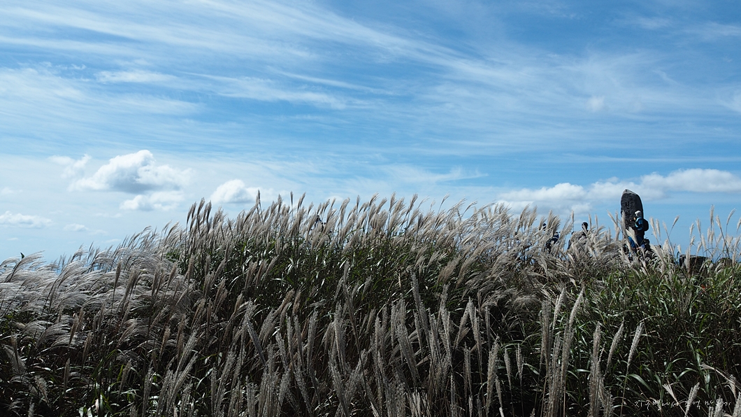 억새들이 모두 한쪽으로 몸을 숙이네요.