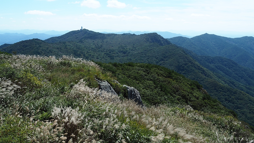 산정에는 억새가 막 보기 좋게 피기 시작하였고 이곳 저것 들국화도 만발하여 가을 분위기 최고였답니다.