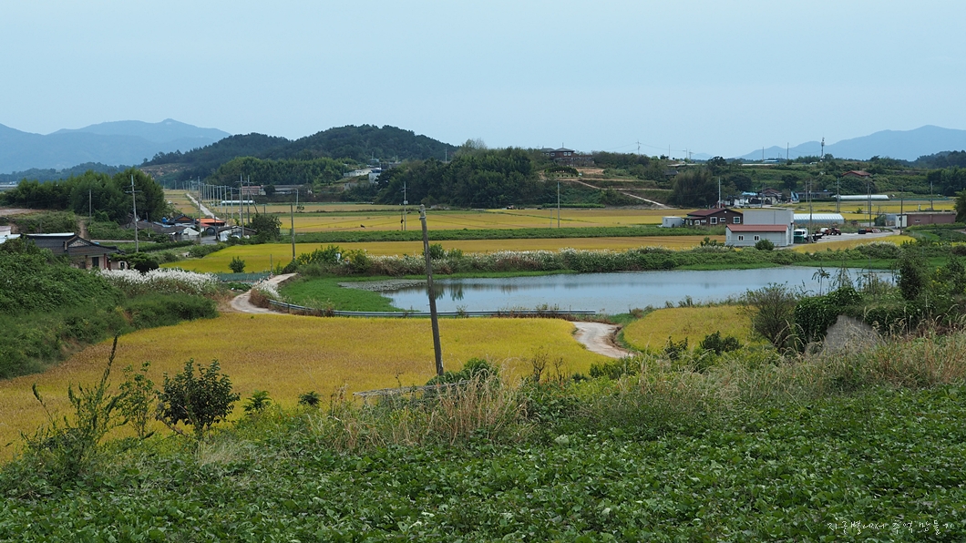 농촌의 수확기 접어든 논들이 황금색입니다.