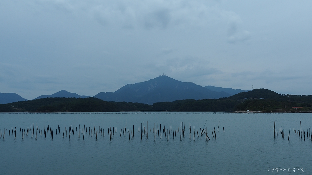 비토도에서 가장 많이 조망되는 산은 하동의 금오산과 사천의 와룡산.