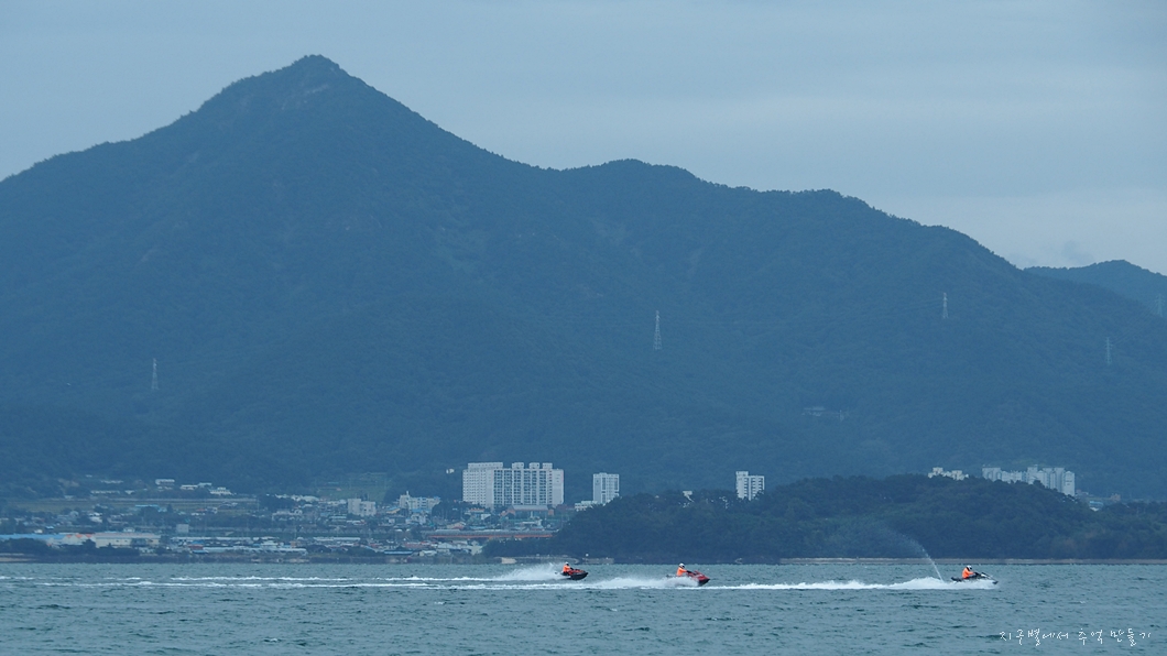 바다 건너 금오산이 돋보입니다.