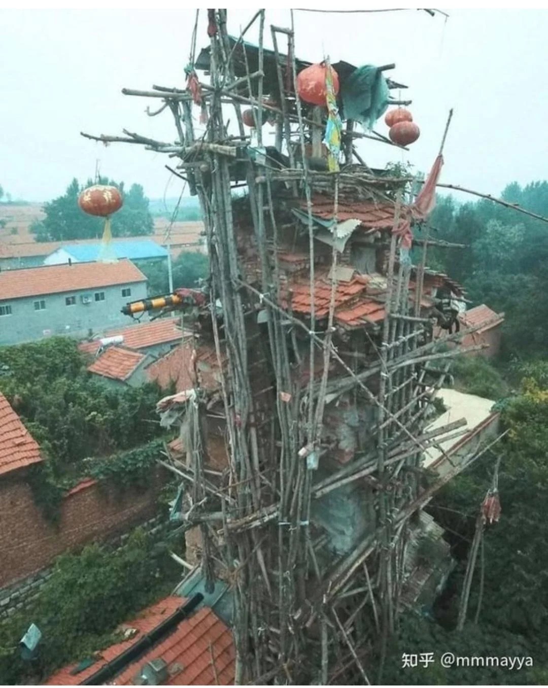 36. 중국 산둥성에서 한 정신장애인 농부가 맨손으로 7층 건물을 지었습니다. 나무, 돌, 벽돌, 점토를 섞어서 만든 이 집을 10년에 걸쳐 지었다고 하네요.