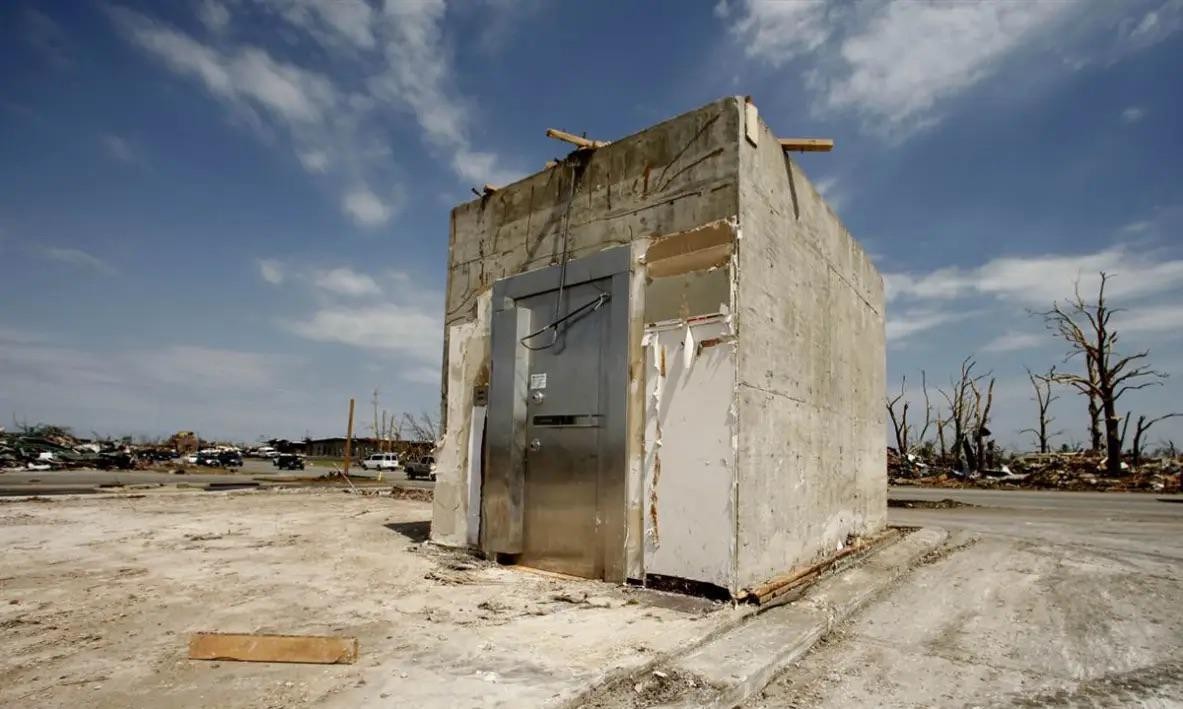 3. 토네이도로 시가지 건물 전체가 파괴된 후 남아 있는 은행 금고