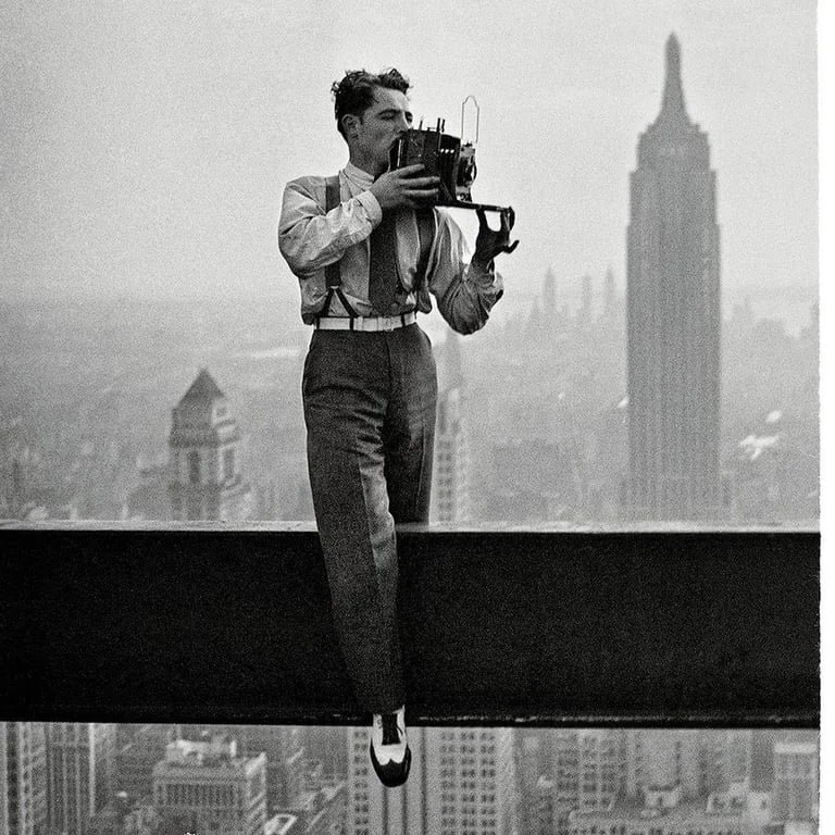 24. 완공되지 않은 엠파이어 스테이트 빌딩에서 노동자들의 점심 식사 사잔을 찍은 사진사의 모습. 누군지는 알려지지 않고 있네요.