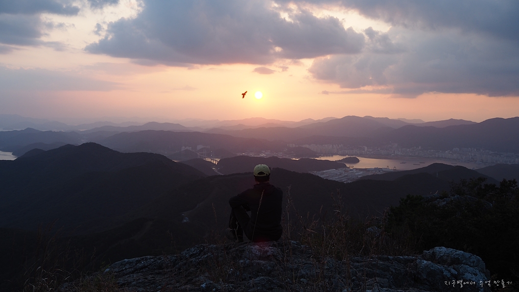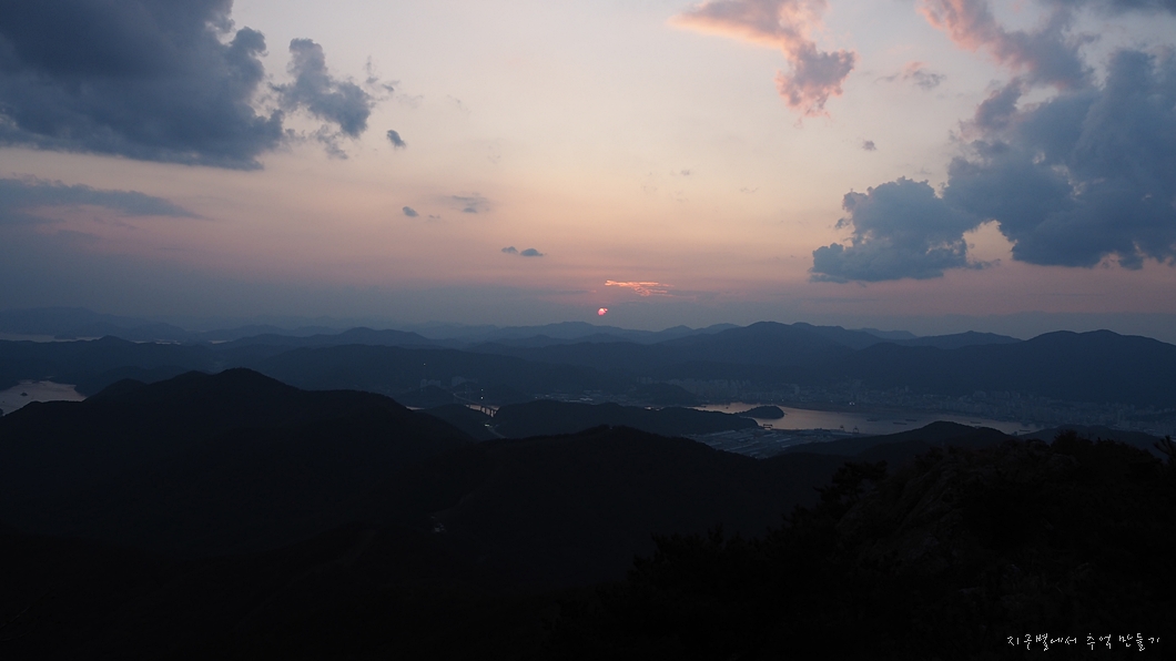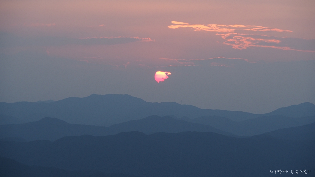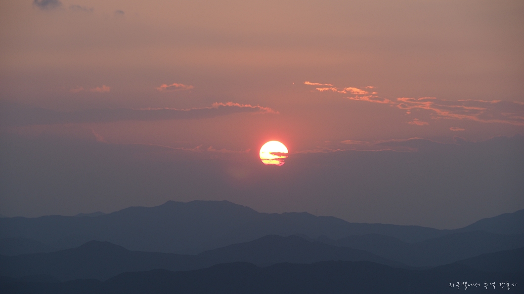 능선 위로 구름이 있어 해가 산 너머로 꼴까닥 하는 풍경은 보기 힘들듯....