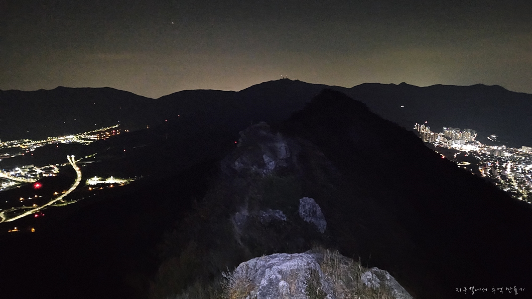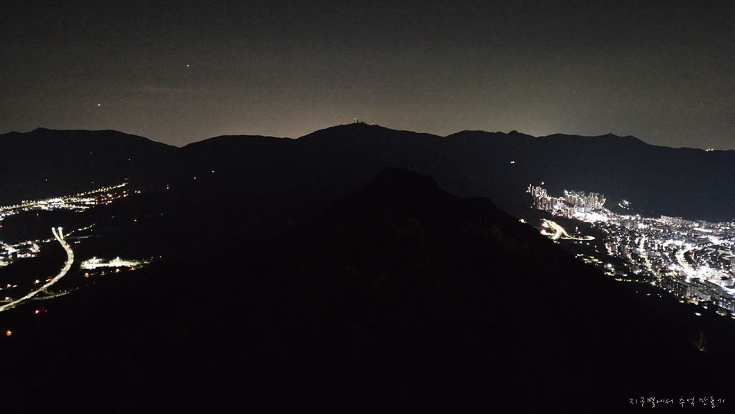남쪽 외 전국 비 소식이 있어 일몰은 크게 기대를 하지 않았는데 말끔하게 일몰 구경도 하고 능선을 거닐면서 양쪽으로 보여지는 멋진 야경에 눈이 황홀.