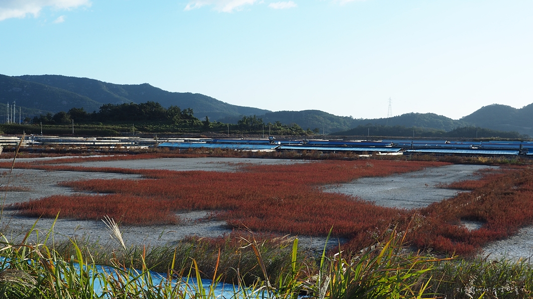 황금 벼논과 염전이 묘하게 어울립니다.