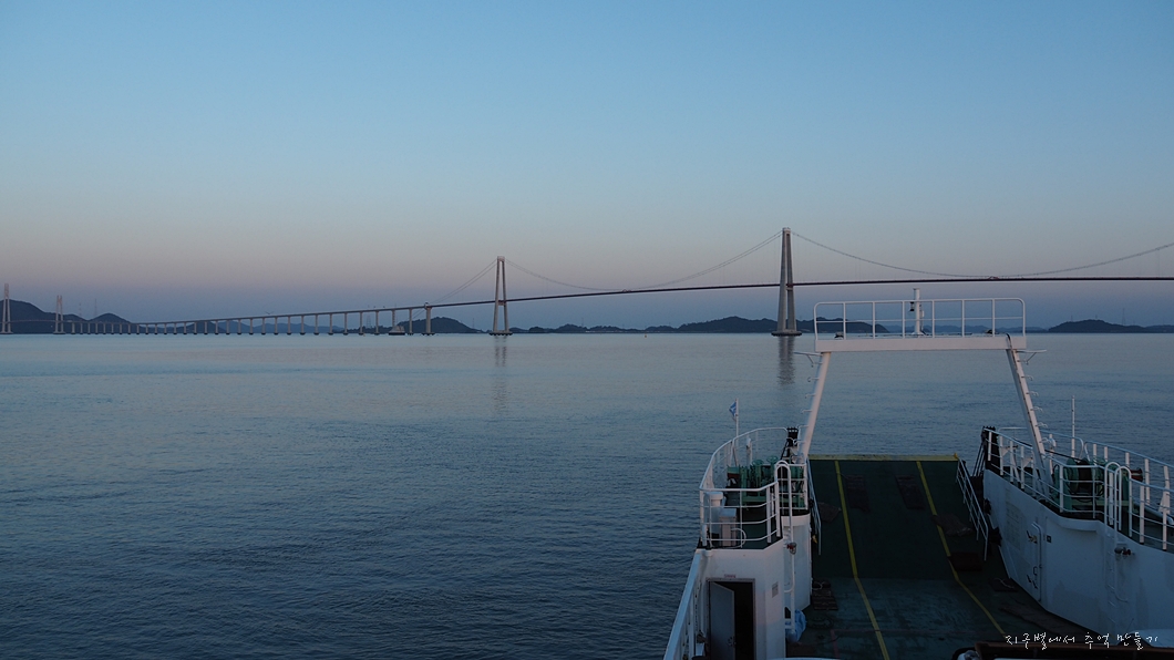 천사대교 밑을 통과하면서 올려다보는 다리 풍경이 참 멋지답니다.