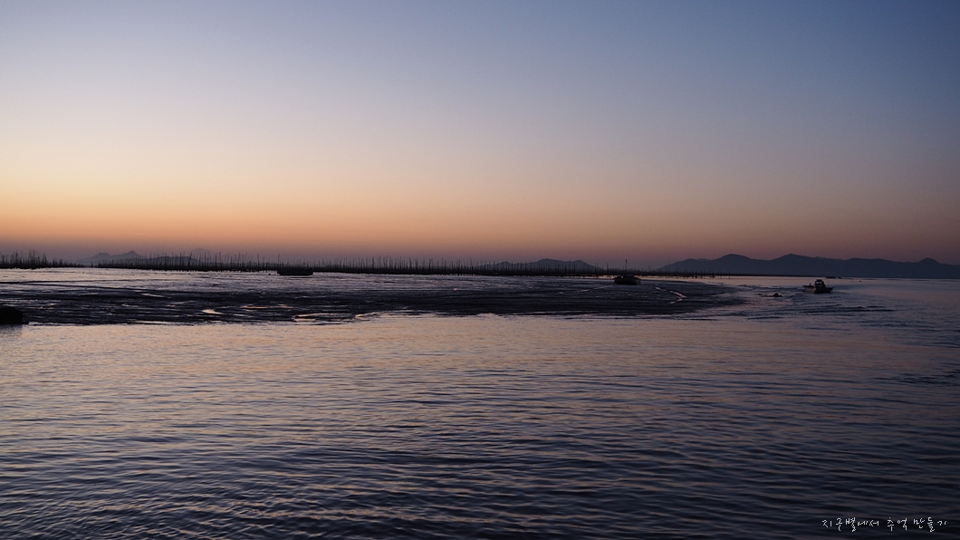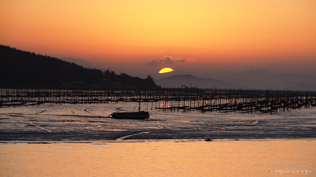 물 빠진 바다 위로 솟아오르는 아침 일출이 참 예쁩니다.