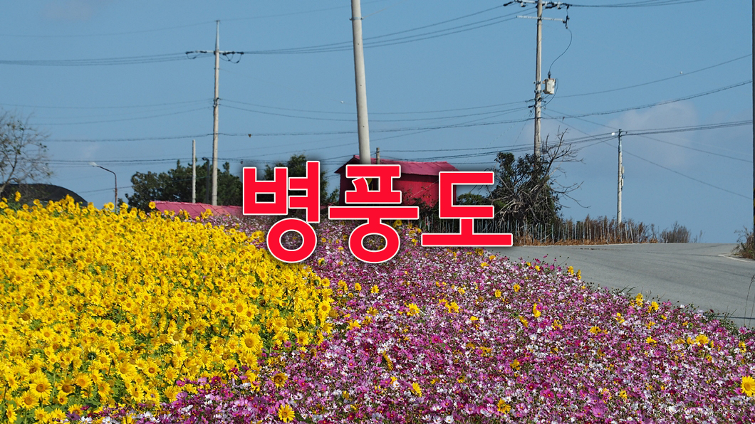 병풍도는 맨드라미와 코스모스, 그리고 해바라기를 잔뜩 심어놔서 온통 꽃섬이 되어 너무나 아름다웠답니다.