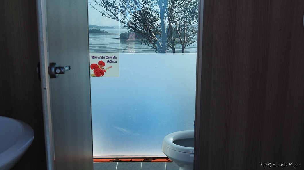 가장 높은 곳에는 예쁜(?) 화장실이 있는데 볼일 보면서 꽃밭과 바다를 구경하게 해 두었습니다.
