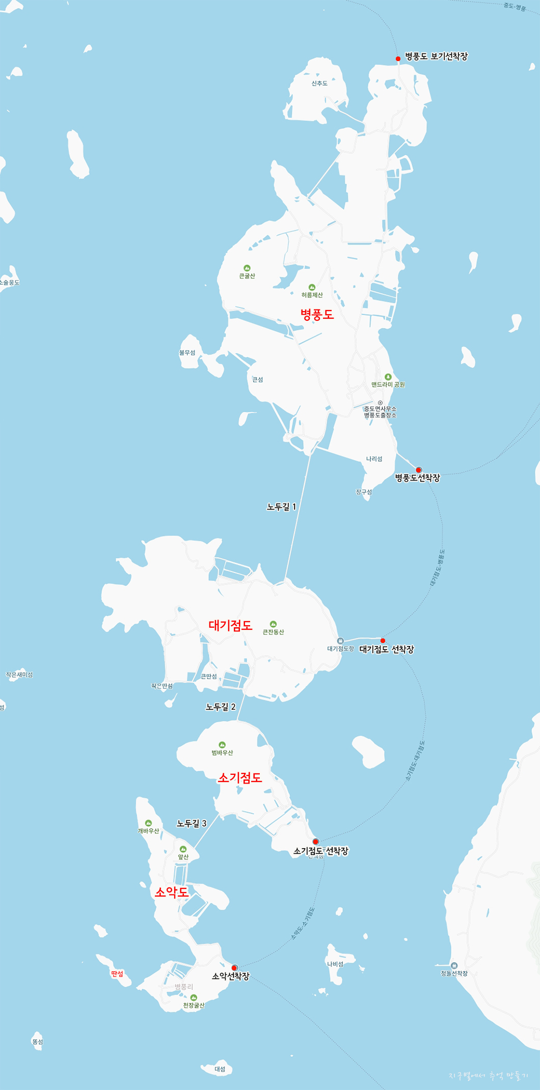 4개의 섬을 연결하는 노도길은 3개가 있는데 이 중 대기점과 병풍도를 연결하는 노도길이 가장 깁니다.