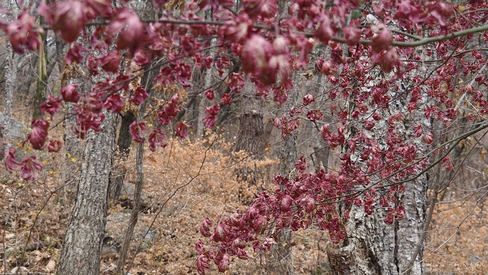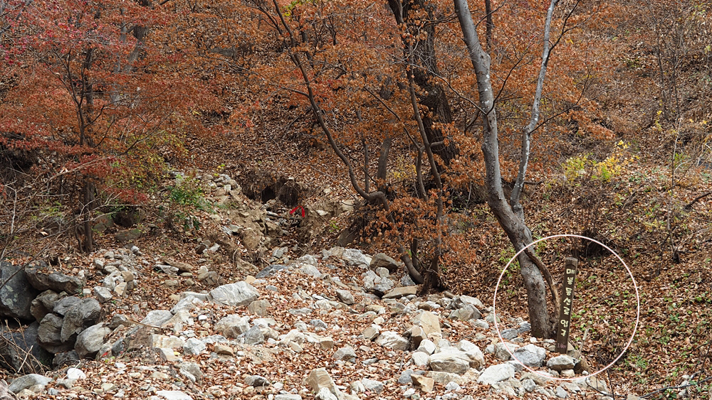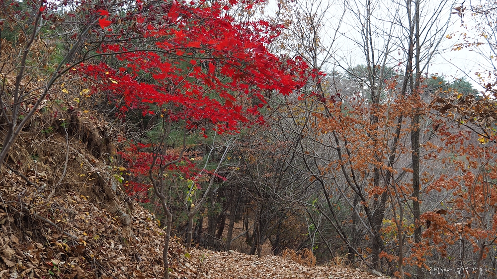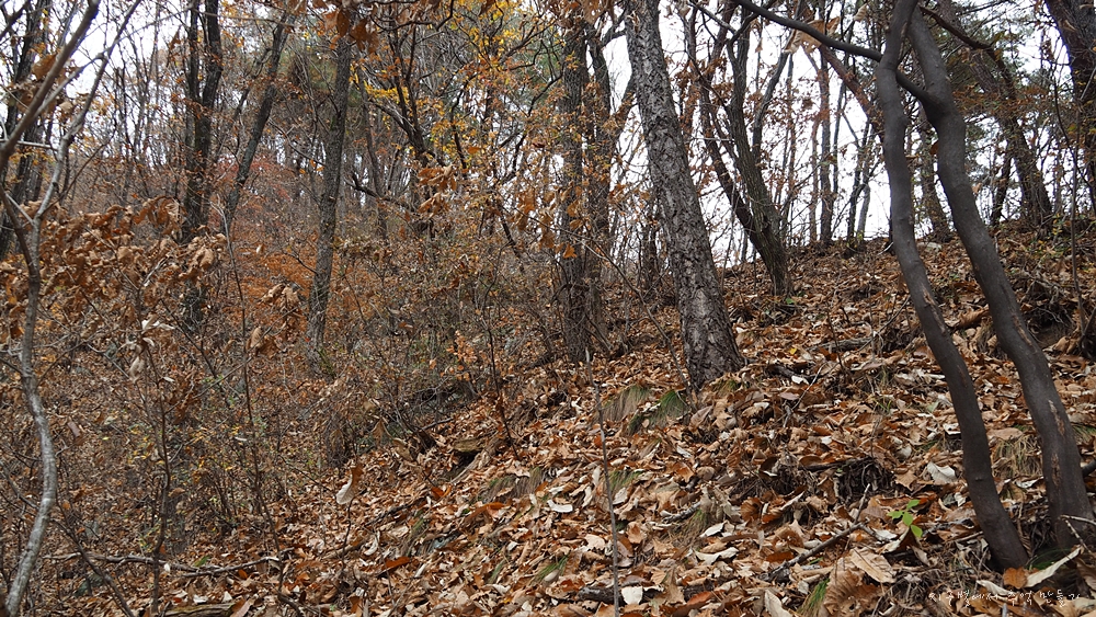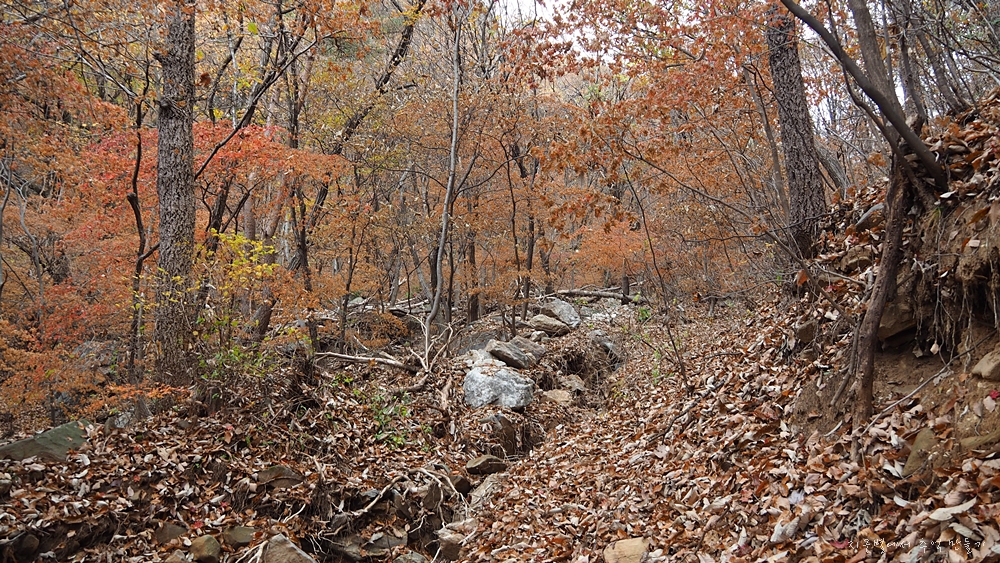 등산로는 낙엽에 묻히고 지난여름 태풍에 파이고 헝클어져 사라졌습니다.