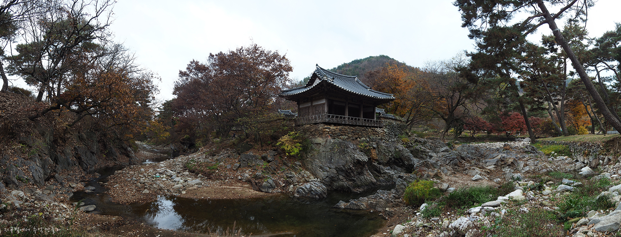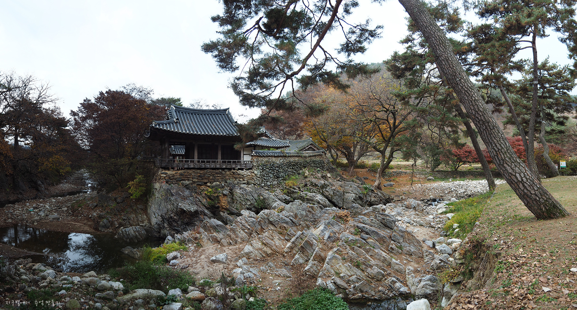 작은 개울이 꺾여 나가는 모퉁이 암반 위에 세워진 정자는 그 자릿세만 하여도 천만금이 되겠네요.