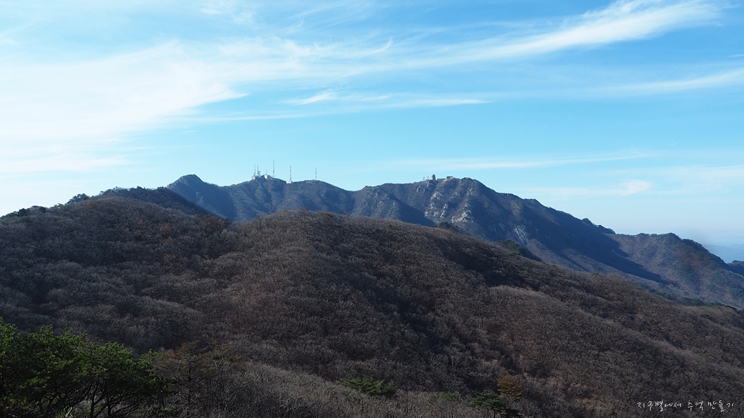 중앙 좌측으로 갓바위가 보이네요. 중앙으로 노적봉도 보이고...