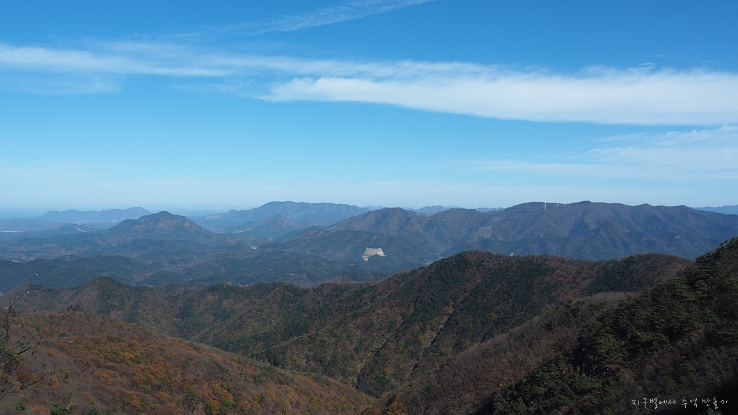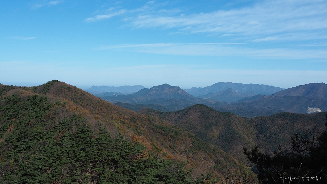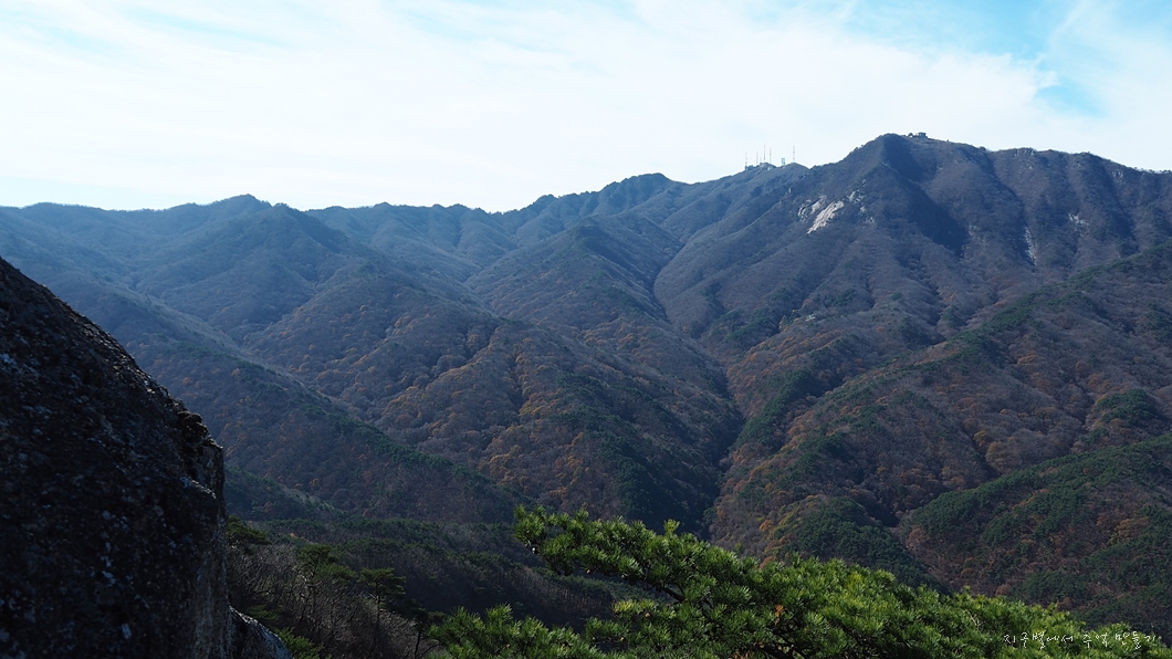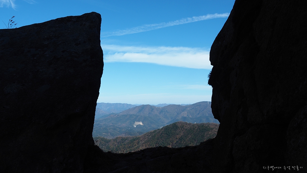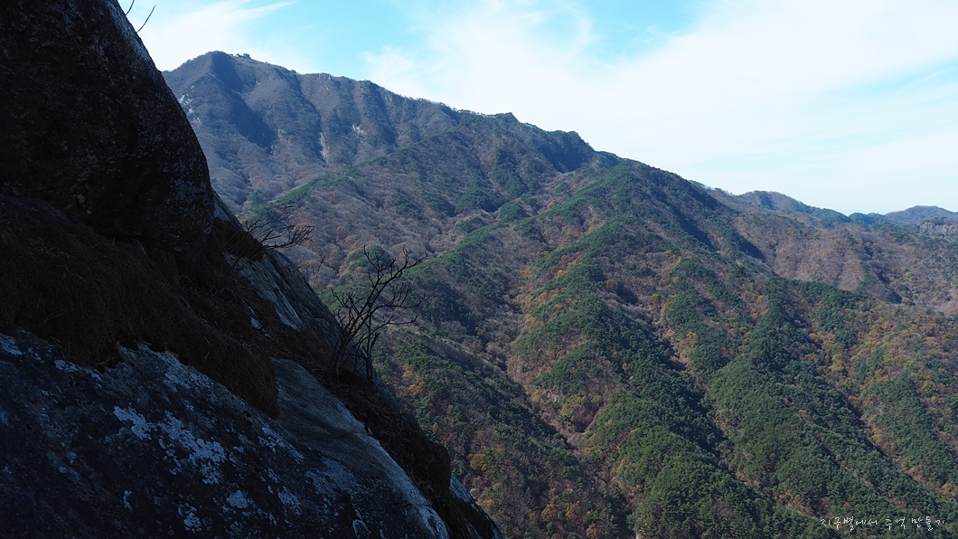 암릉 구간을 기어 올라가다가 옆을 보니 북쪽으로 조망이 트이는 곳이 나타났네요.