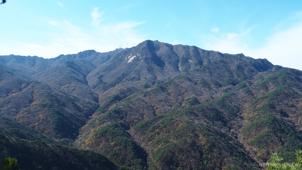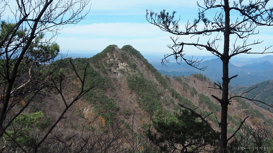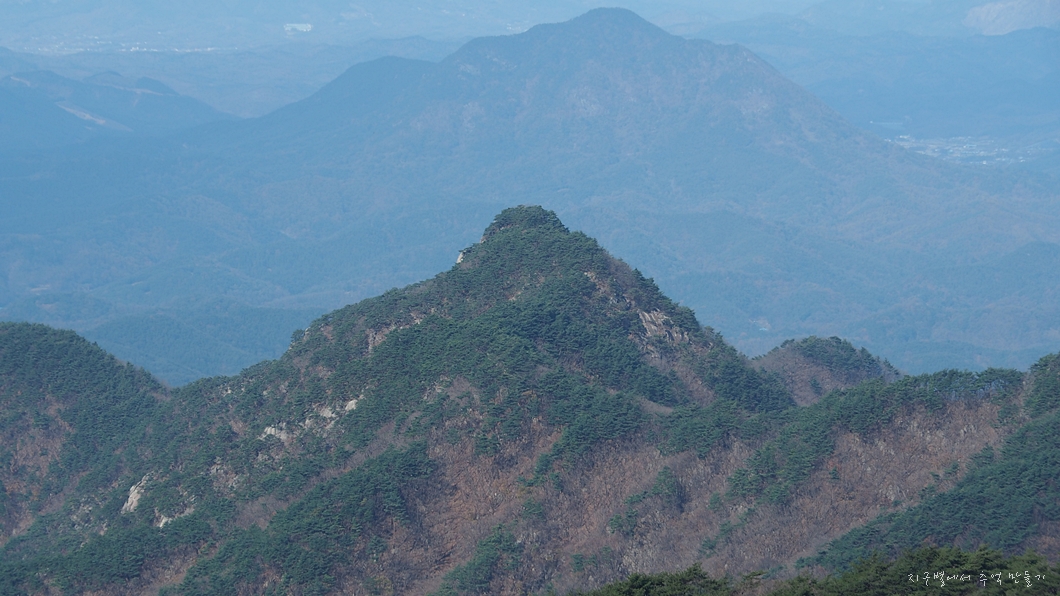 멀리 올라온 투구봉이 보이네요.(가운데 뾰쪽한 봉우리)