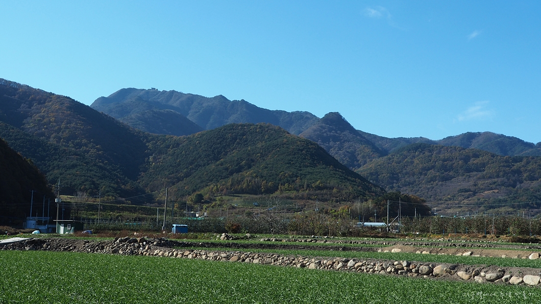 치산계곡 들어가기 전 올려다 본 팔공산 정상.