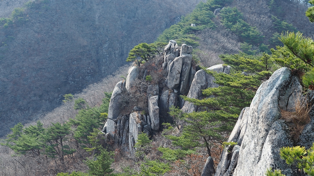 팔공산에서는 가장 큰 바위 암릉 구간인데도 능선에서는 나무에 가려 한눈에 확 들어오는 장소가 없어 더욱 감질나게 가고픈 곳이었네요.