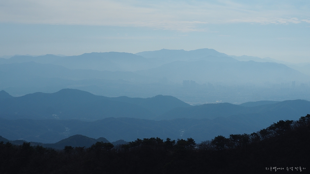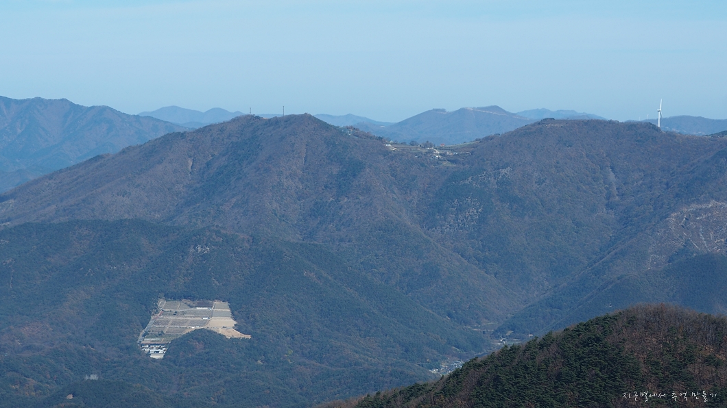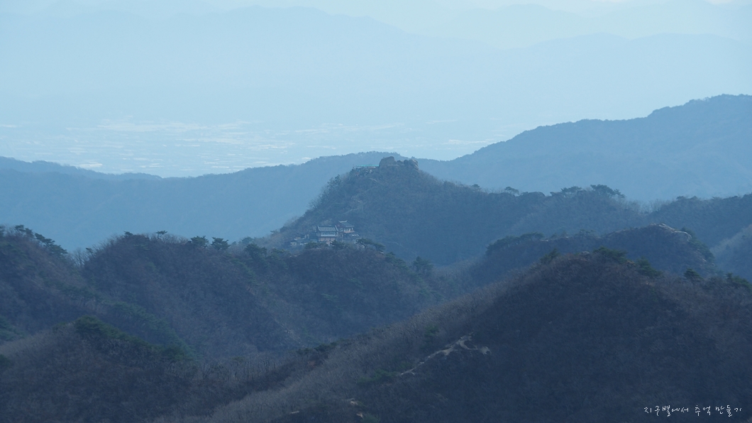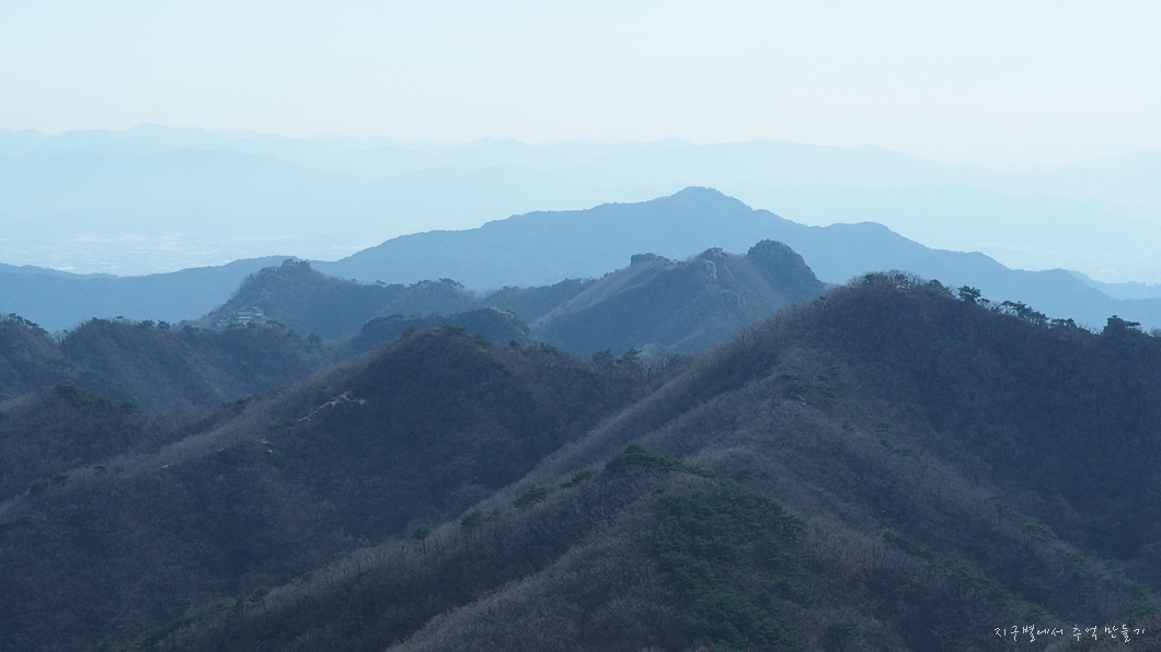 북쪽으로는 크게 이름이 있는 산들은 보이지 않는데 금성산과 비봉산은 알아보겠네요.(좌중앙 뒤)