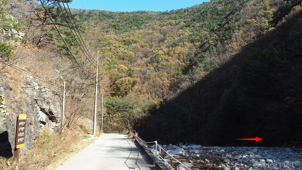 일단 개울을 건너 어느곳으로든지 올라가면 되는데 저는 수도사에서 100여 m 아래 사방댐을 건너서 올라가기로..