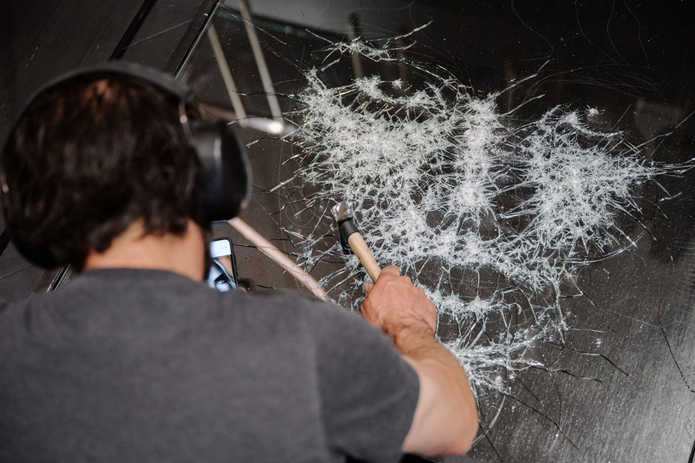 그러다가 2016년쯤에 망치로 유리를 두드려 균열을 가게 만들어 만드는 망치 그림 예술(Hammer Art)을 선보이게 되었네요.