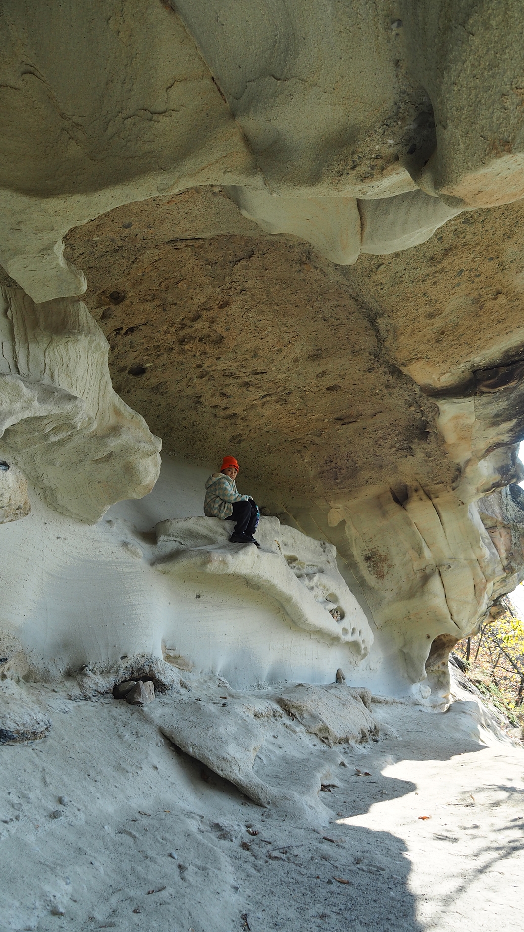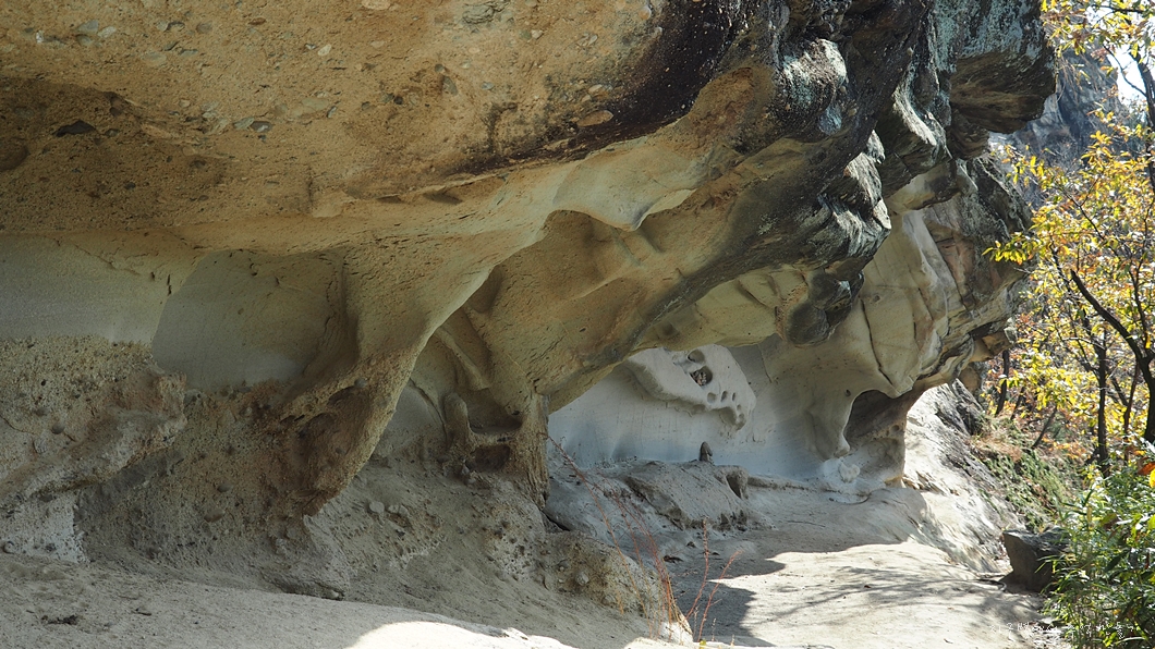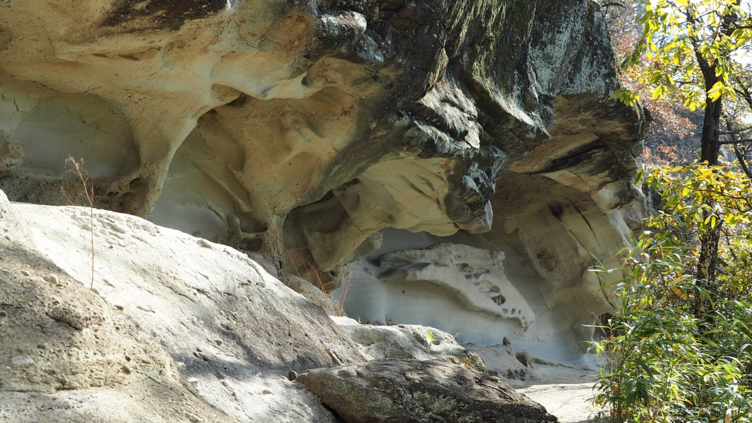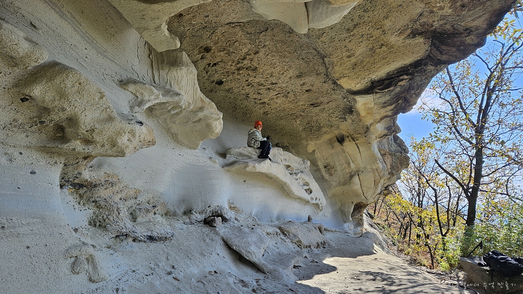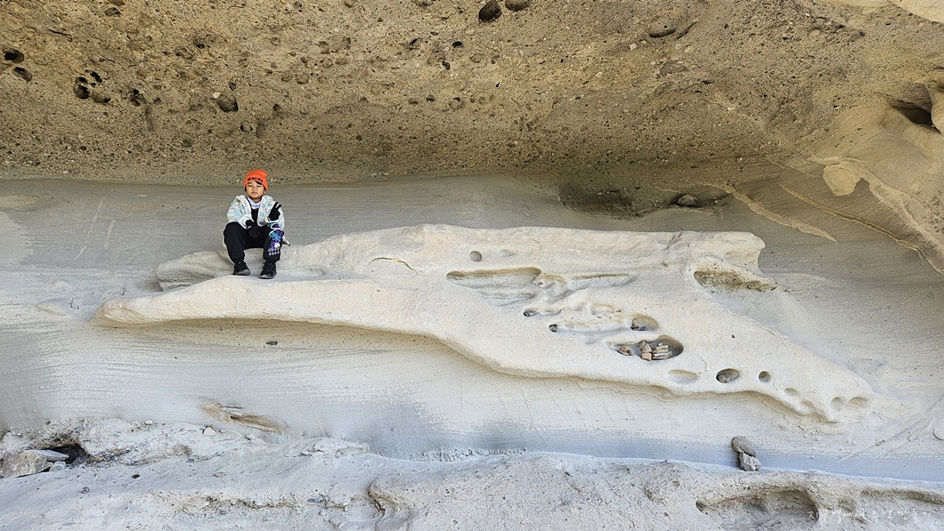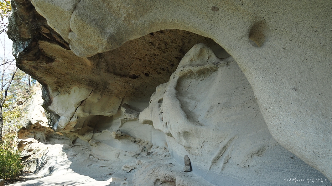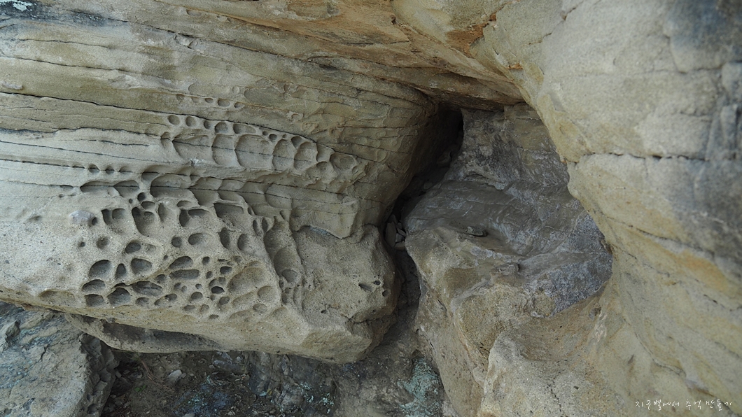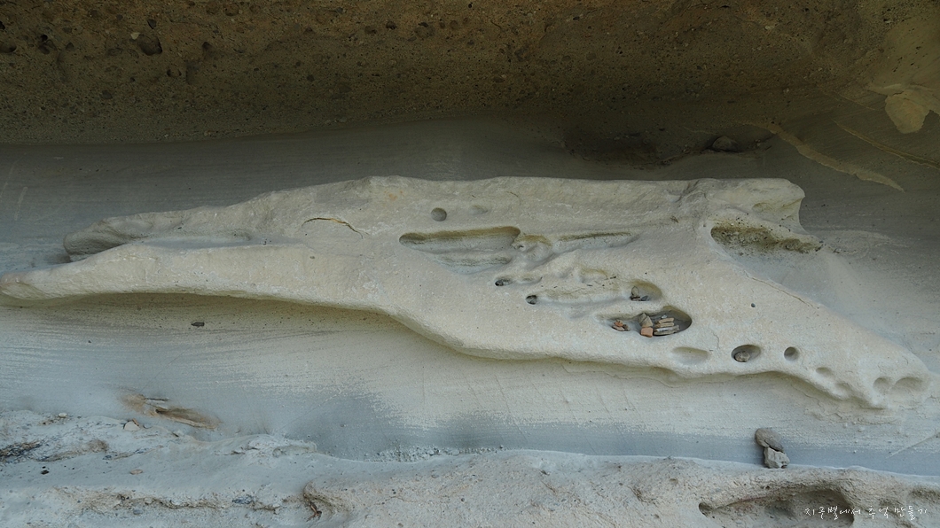 상어굴이라고 이름 붙여진 길이 약 100여 m 정도 되는 기이한 형태의 사암으로 된 얕은 처마식 동굴인데 보는 각도에 따라 이런저런 이름을 붙여도 되는 특이한 장소랍니다.