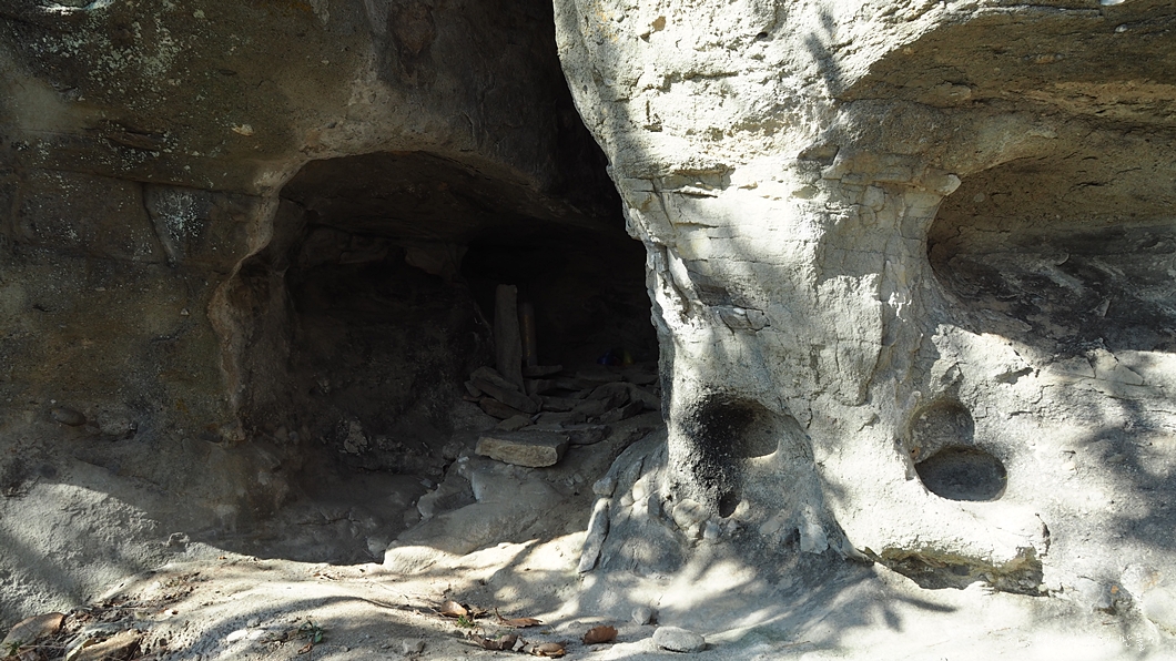 안쪽 벽에 있는 특이한 사암형태의 바위.