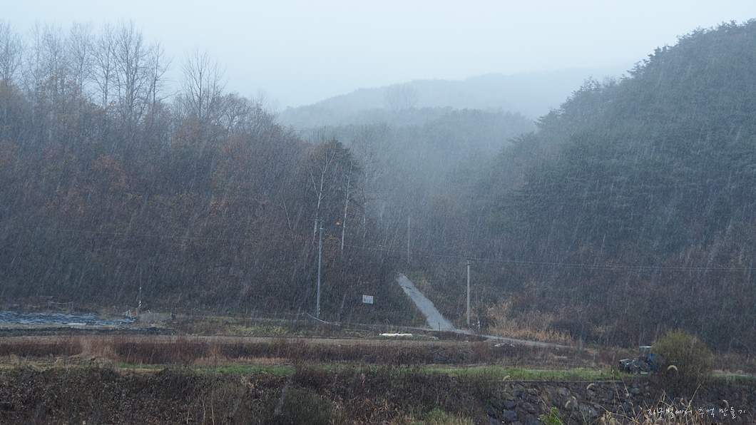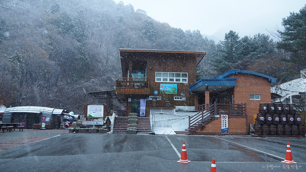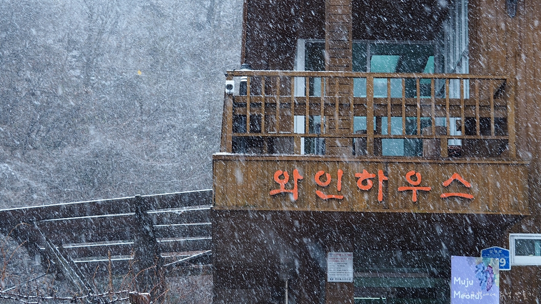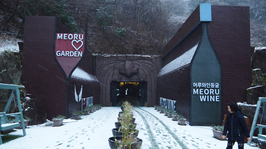 머루와인 동굴에 도착하니 거의 폭설입니다.