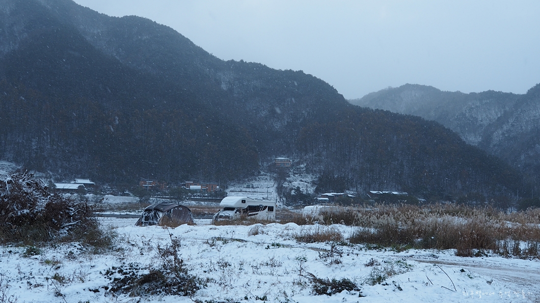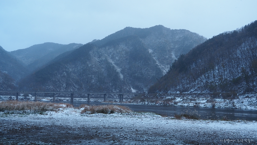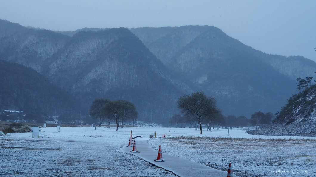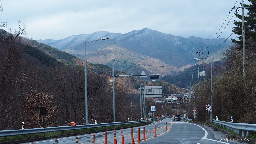 바깥에 나오니 눈은 그쳤는데 주변 산들이 온통 하얀 눈을 쓰고 있습니다.