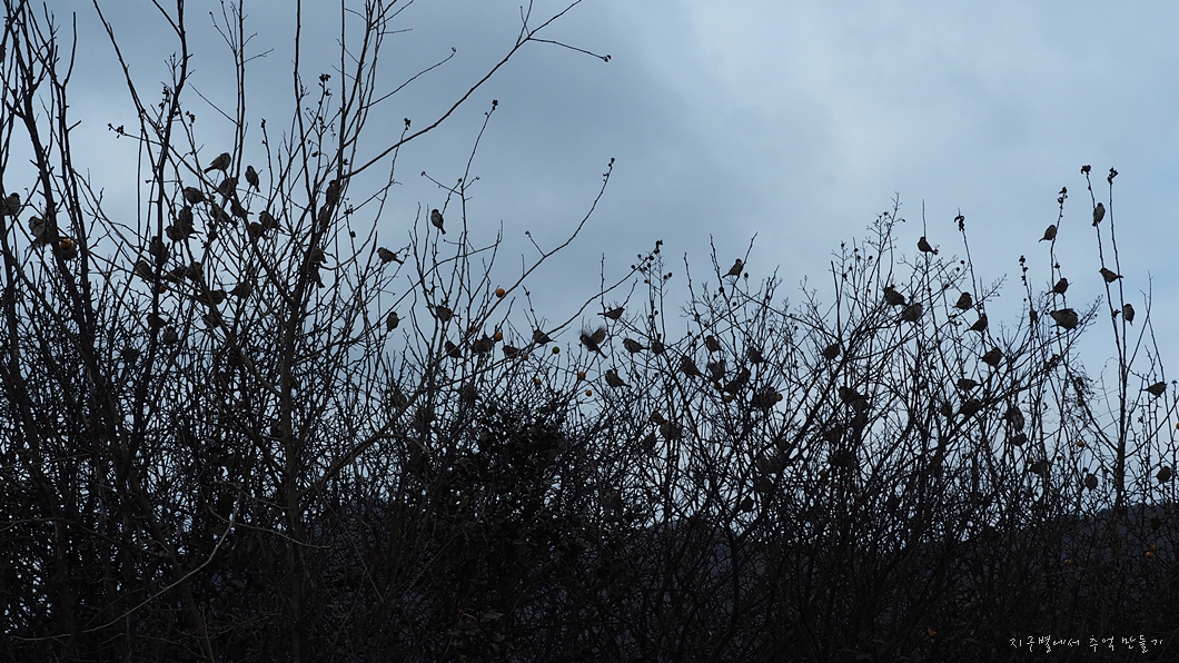 참새는 겁이 많아 사람 기척이 나면 날아가는데 이넘들은 내가 내려서 고함을 쳐도 움쩍도 않네요.