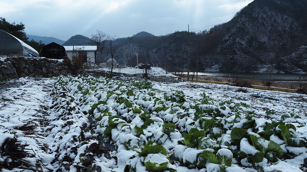 날씨가 영하로 떨어지면 무우는 얼릉 뽑아야 되지만 배추는 잘 얼지 않아 당분간 놔둬도 된다고 김여사가 아는척 합니다.