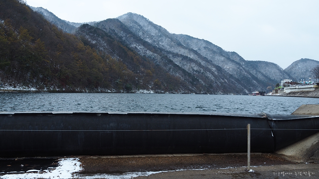 길다란 고무 튜브로 강물을 막아 놨는데 신기하네요.