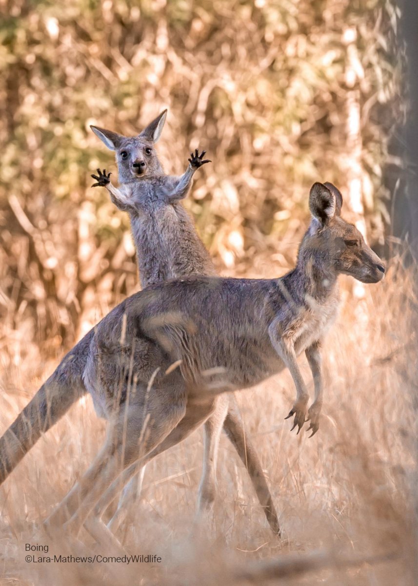 2023년 올해는 85개국에서 5,300점의 작품이 출품되어 그중에서 Jason Moore라는 사진작가가 찍은 'Air Guitar Roo'라는 제목의 작품이 가장 재미있는 사진으로 뽑혔네요.