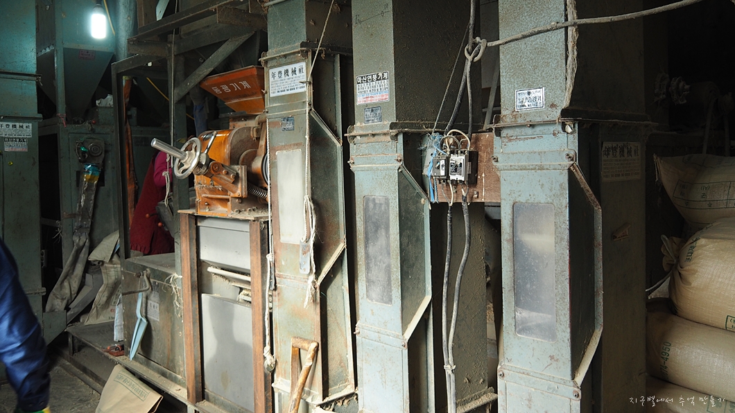 정미소는 이전 장소에서 벽을 트고 한 칸 옆으로 옮겨졌는데 이전 정미소를 했던 자리도 소개해 주었습니다.