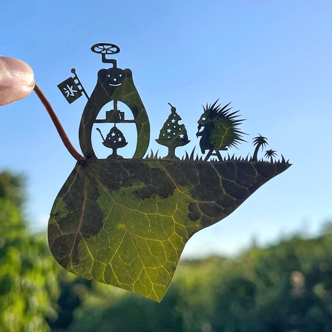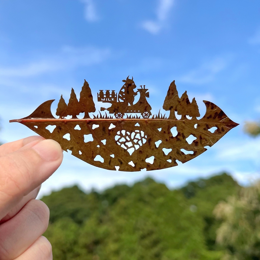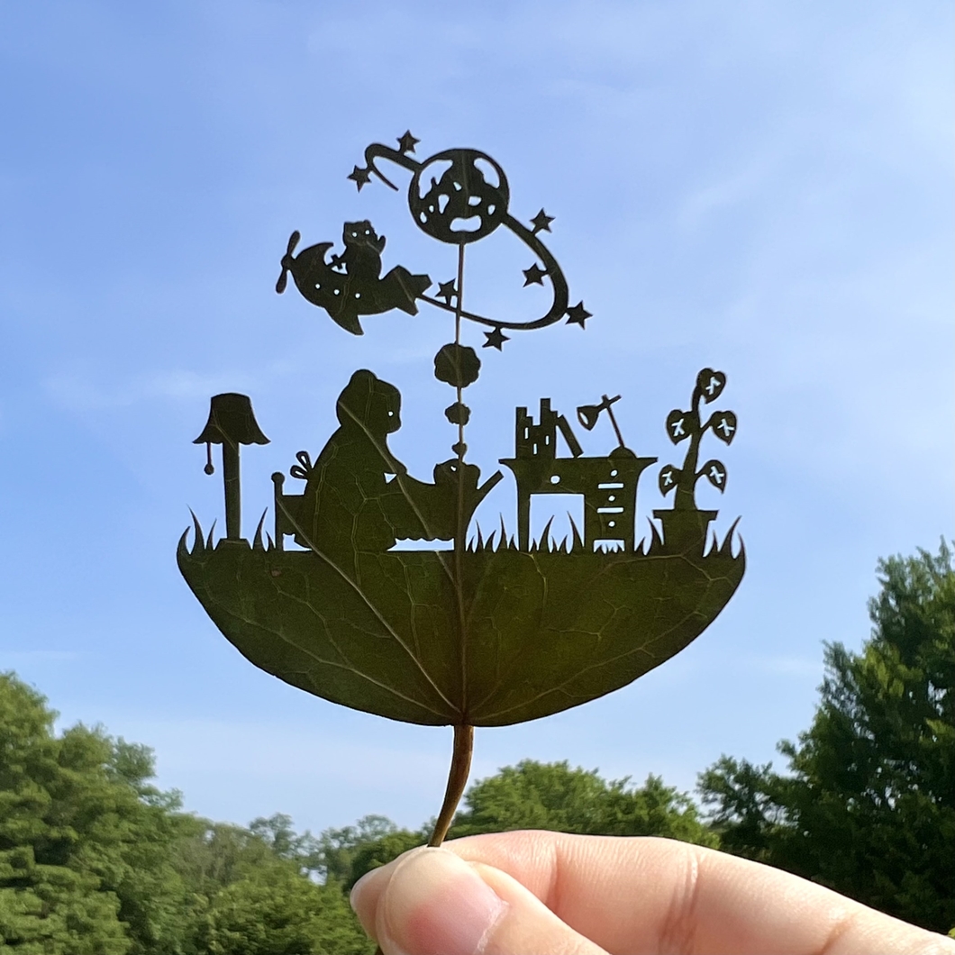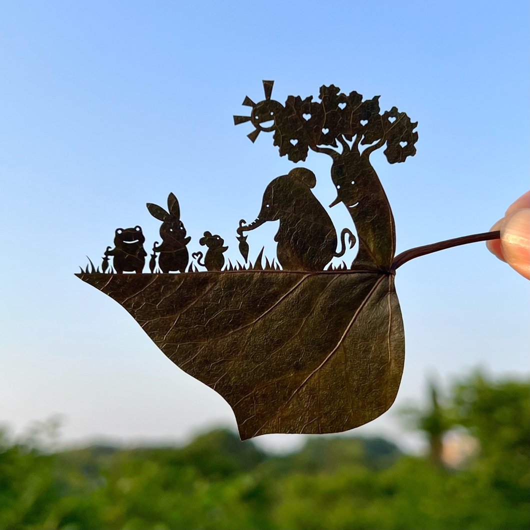 나뭇잎을 잘라서 만든 조각 작품입니다.