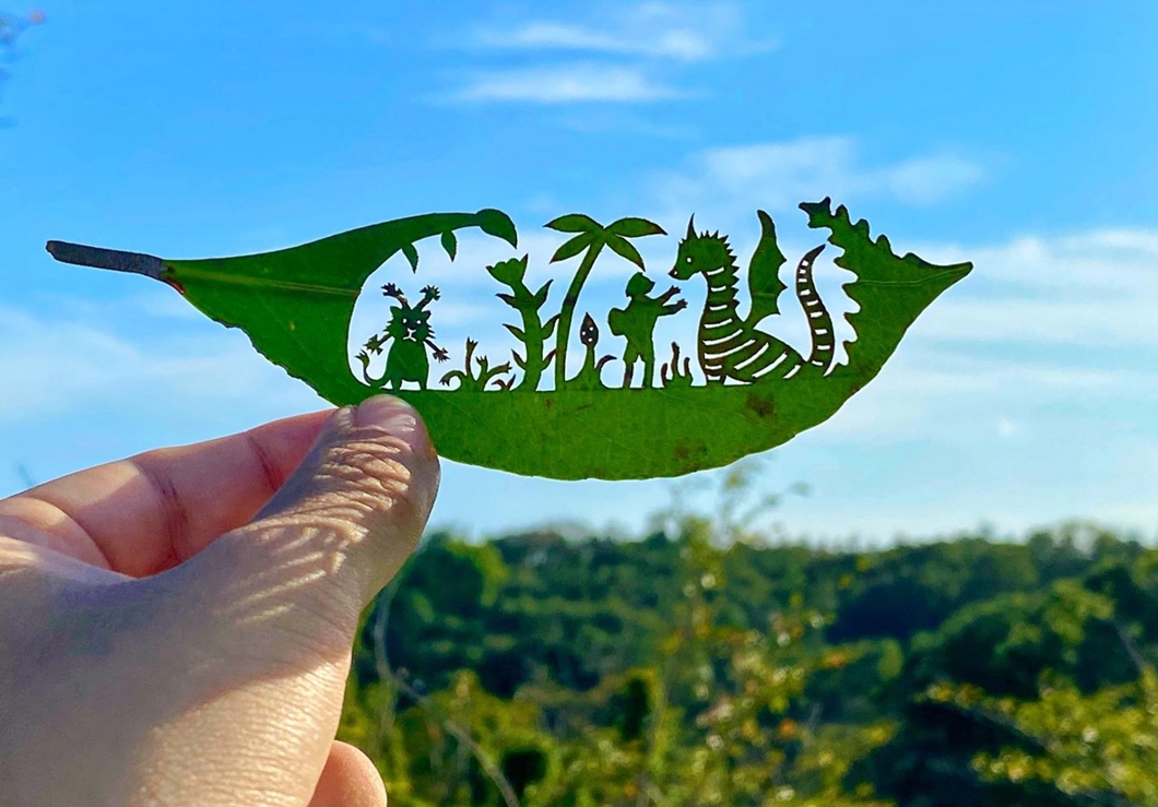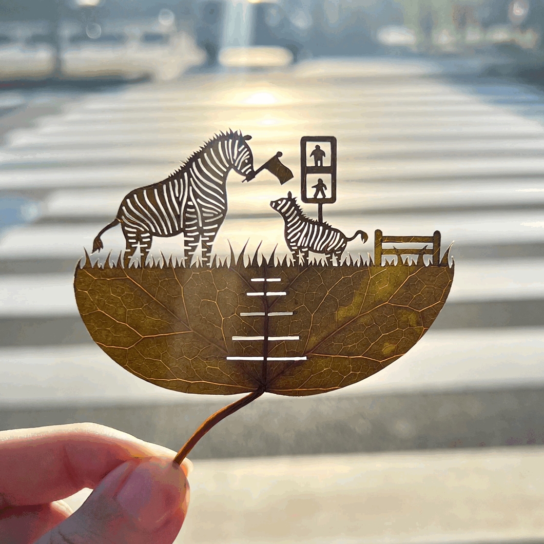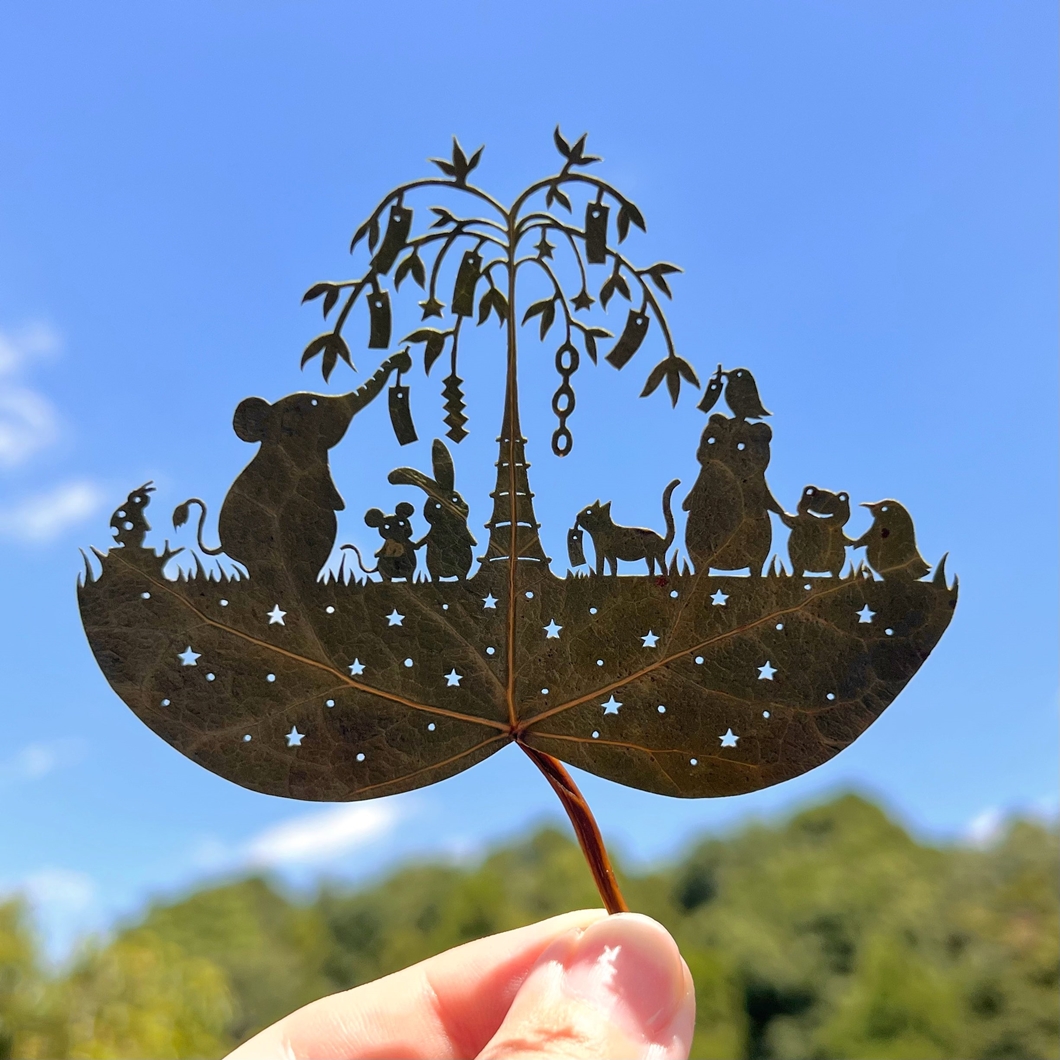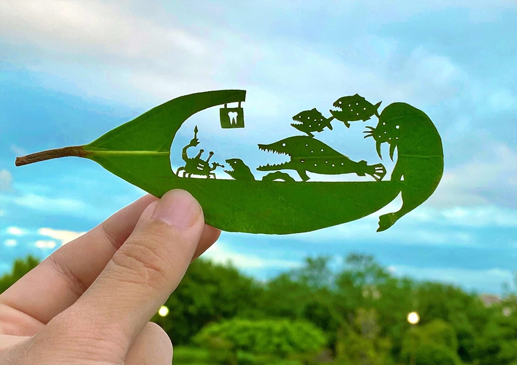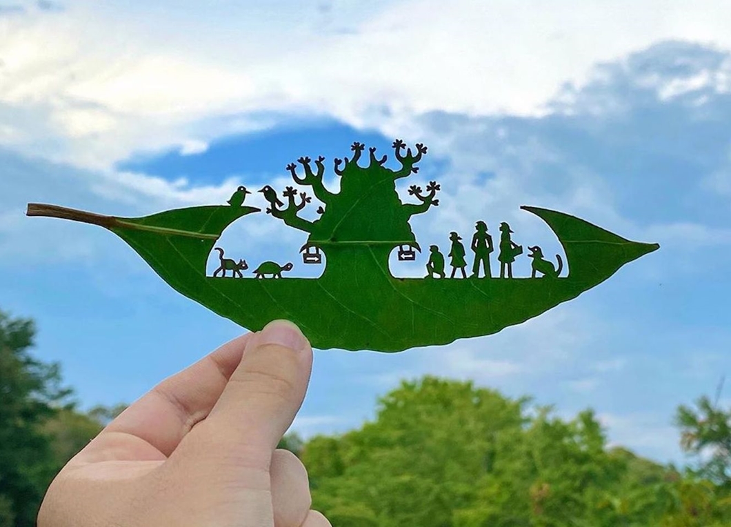 나뭇잎을 잘라서 만든 조각 작품입니다.