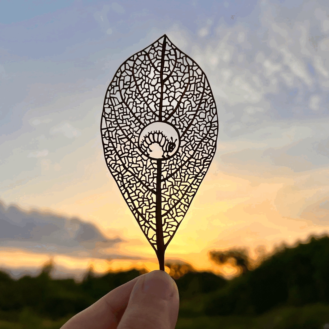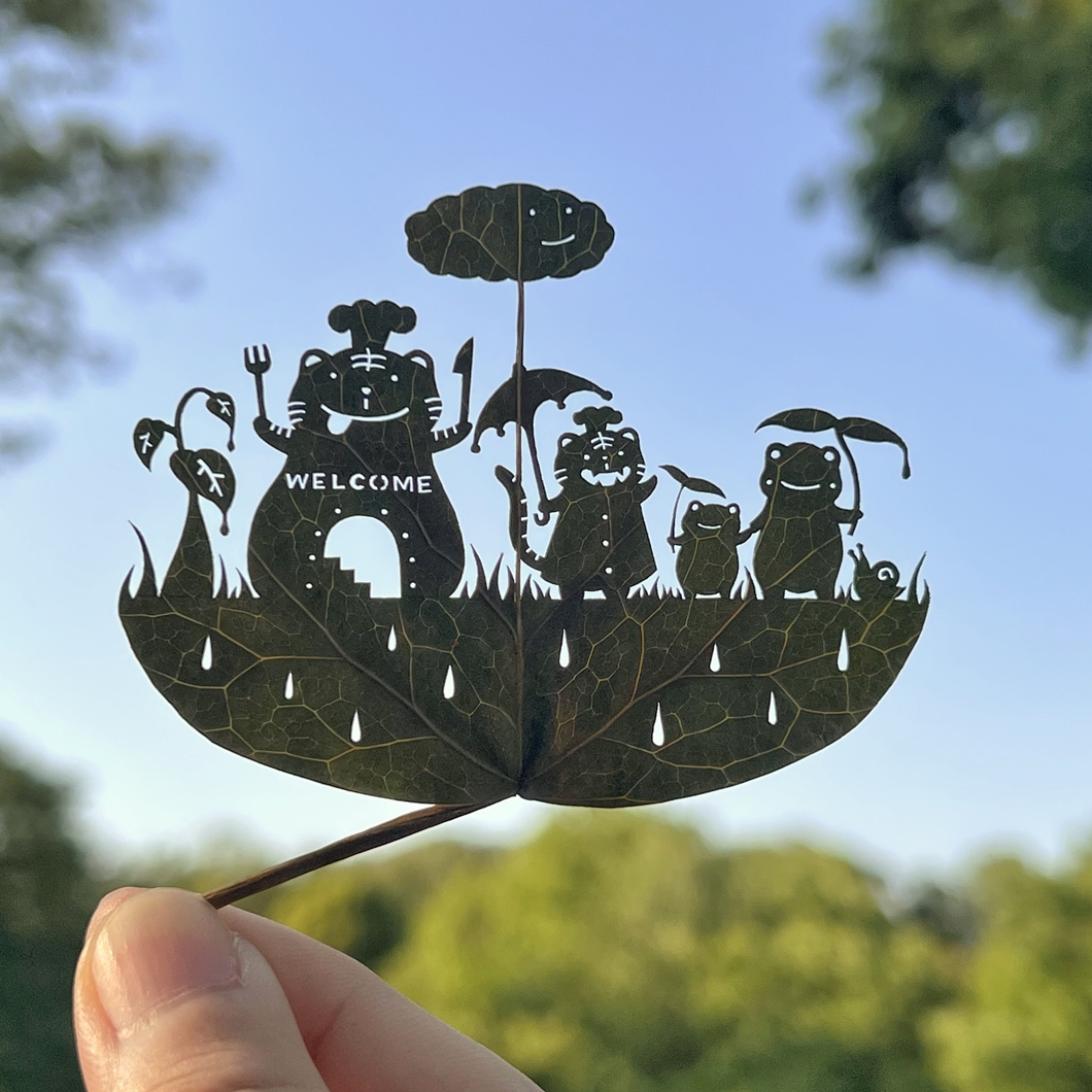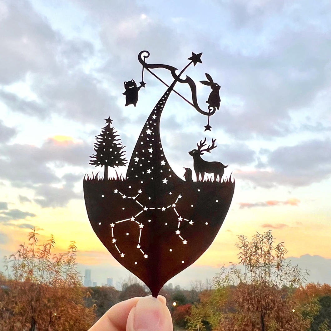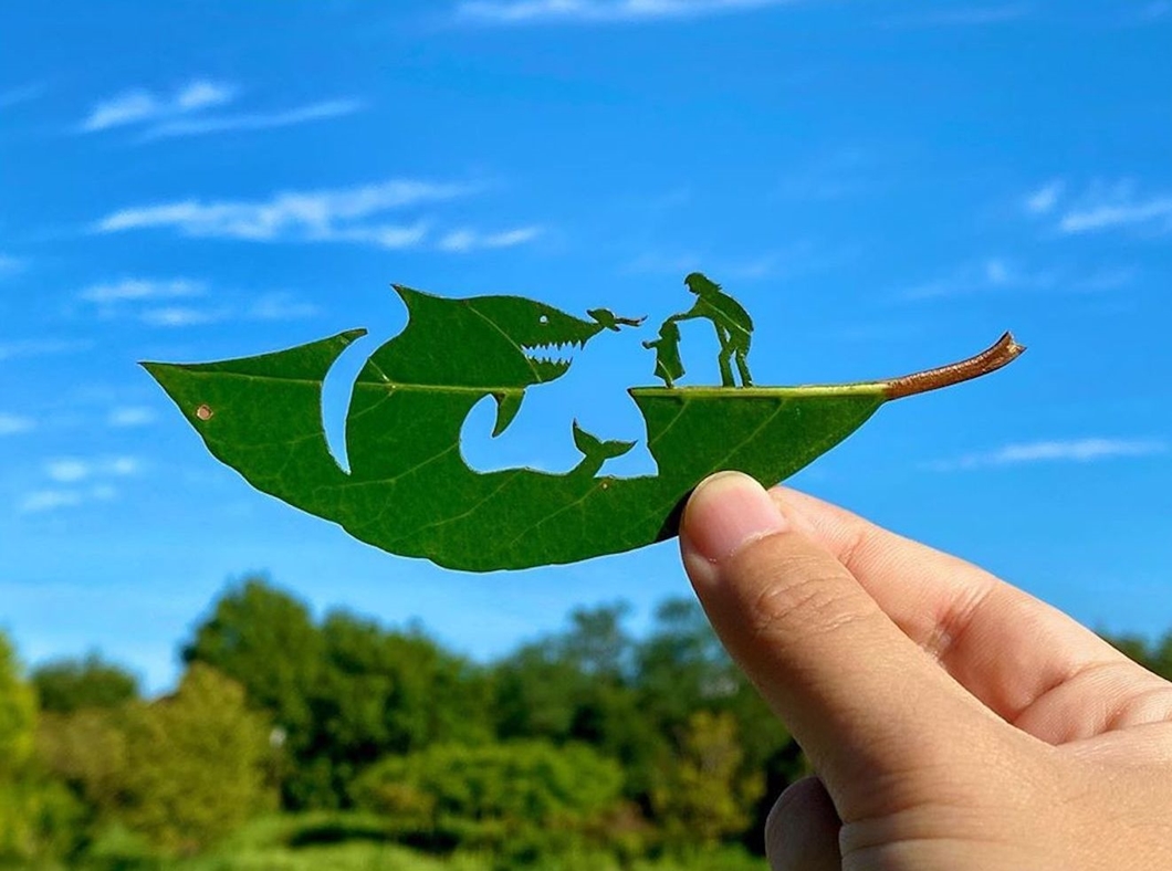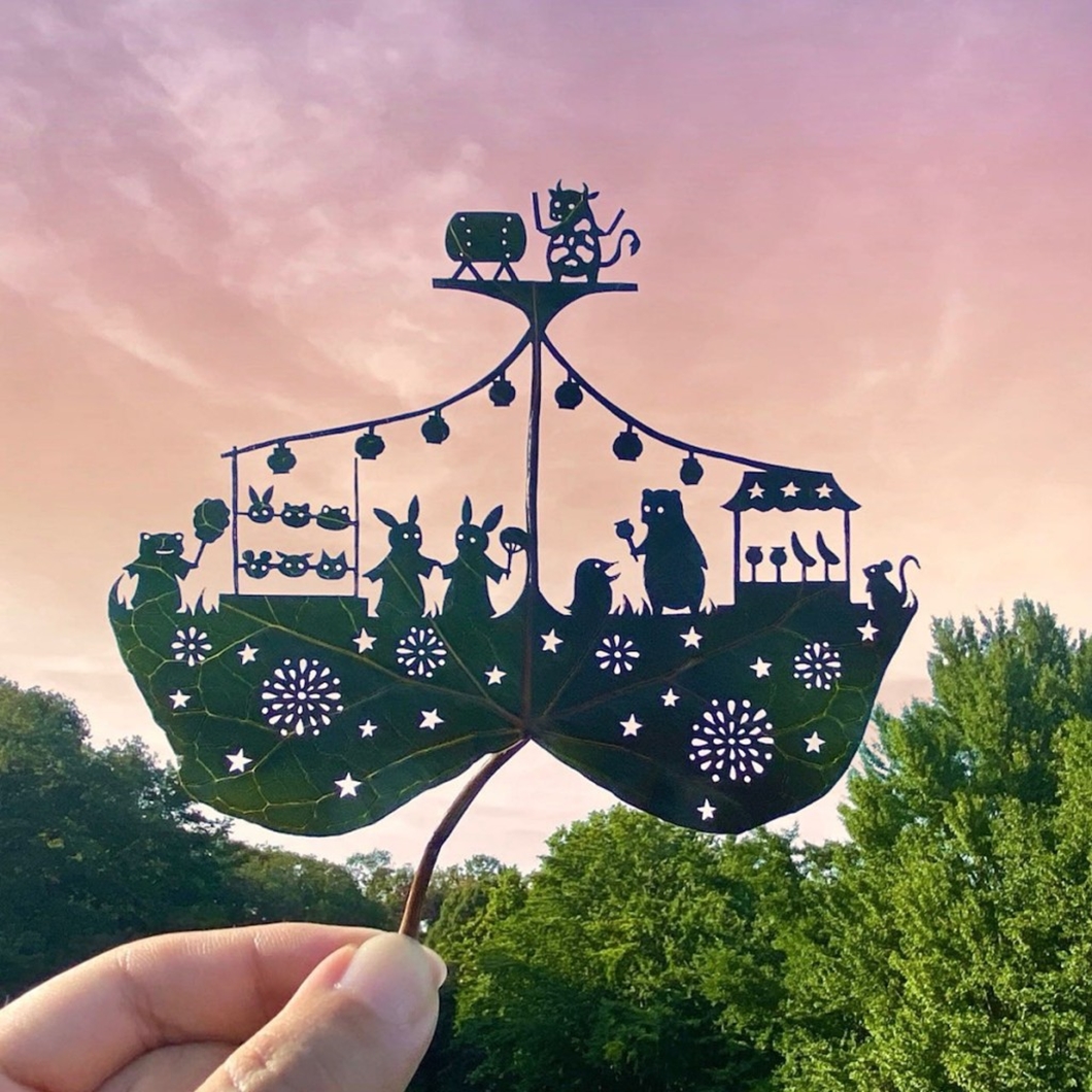 나뭇잎을 잘라서 만든 조각 작품입니다.