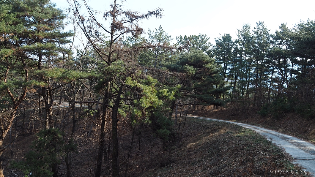 위 사진의 화살표 방향으로 약 1km 정도 도로를 따라 걷습니다.