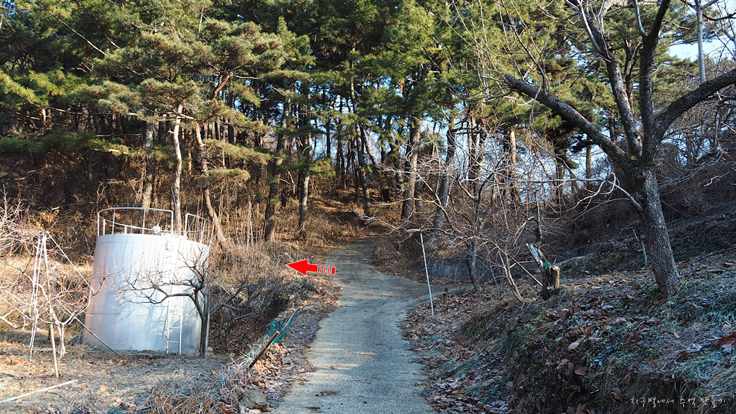 마을 뒤로 오르면 이런 물통을 만나는데 이곳에서 좌틀하여 산길을 따라 오르면 됩니다.
