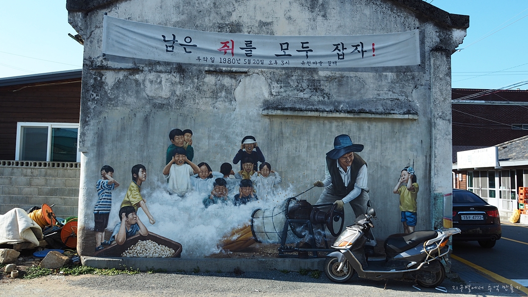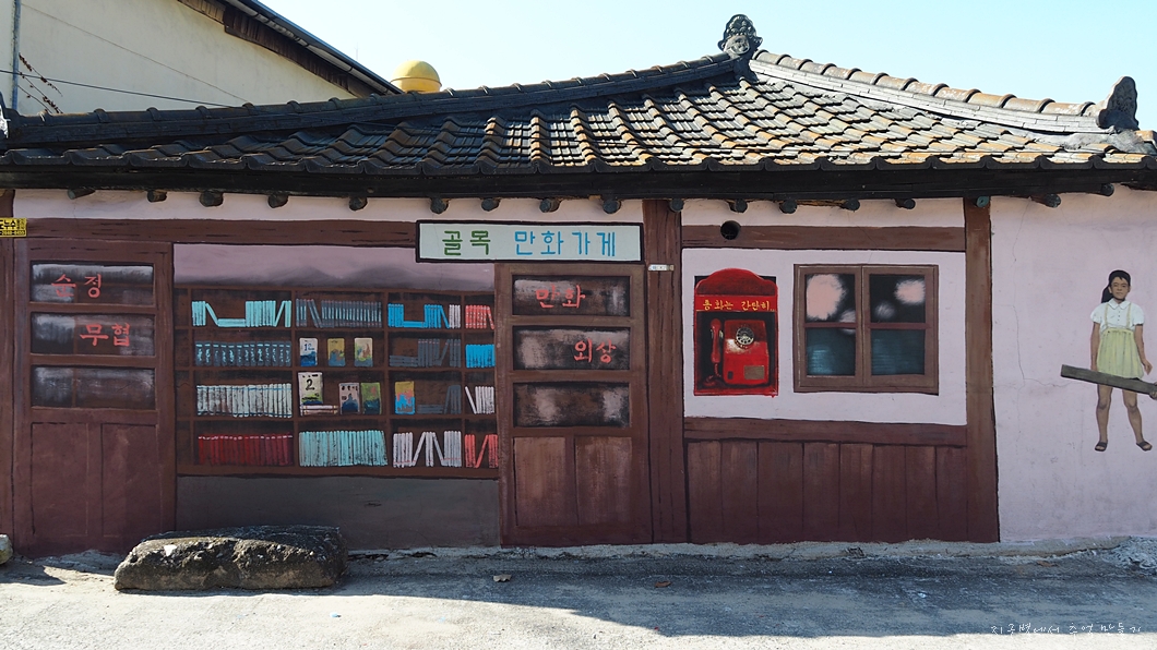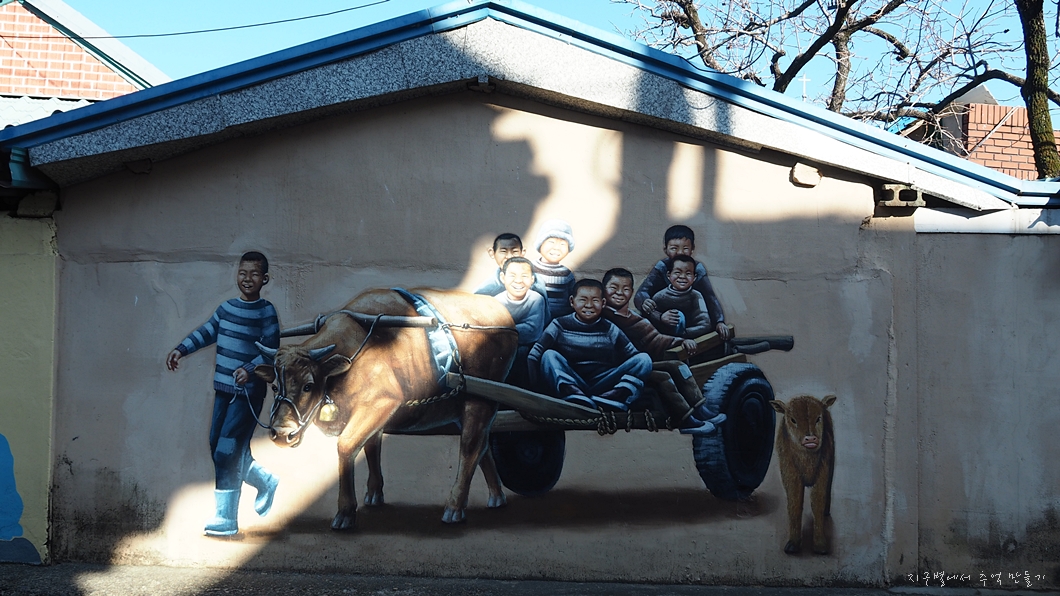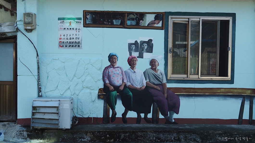 마을은 이곳저곳에 여러 가지 벽화를 많이 그려 놓았네요.