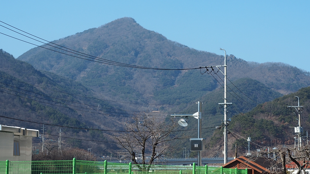 유천마을에서 올려다보이는 산이 오산인데 저곳 좌측이 그 유명한 한재 미내리 재배지역.