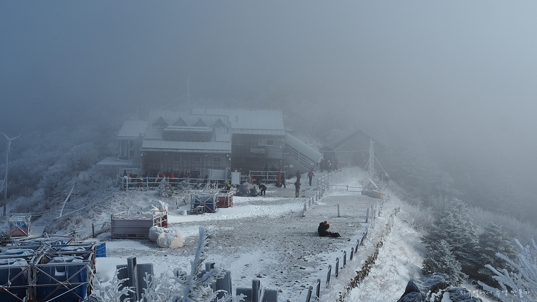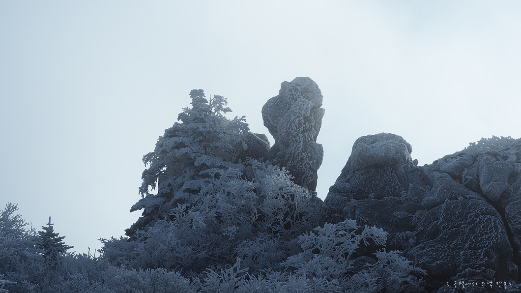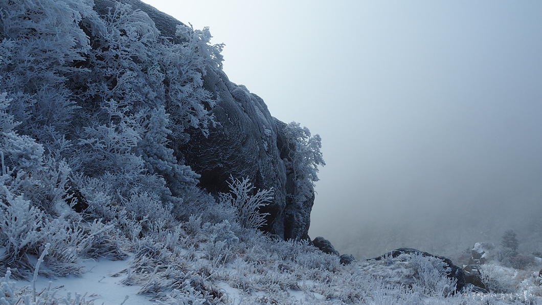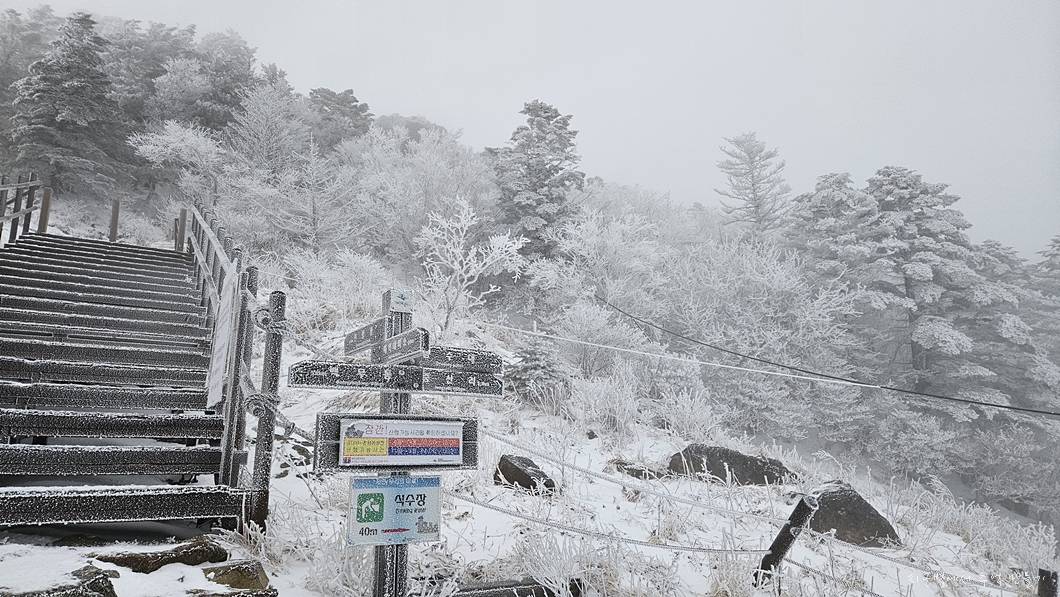 망바위 지나고 장터목 가까워지니 온통 하얀 세상입니다.