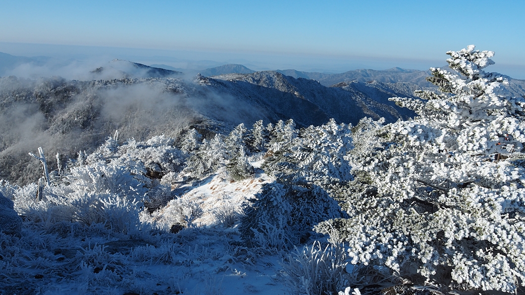 중봉도 눈꽃으로 치장이 되어 있습니다.