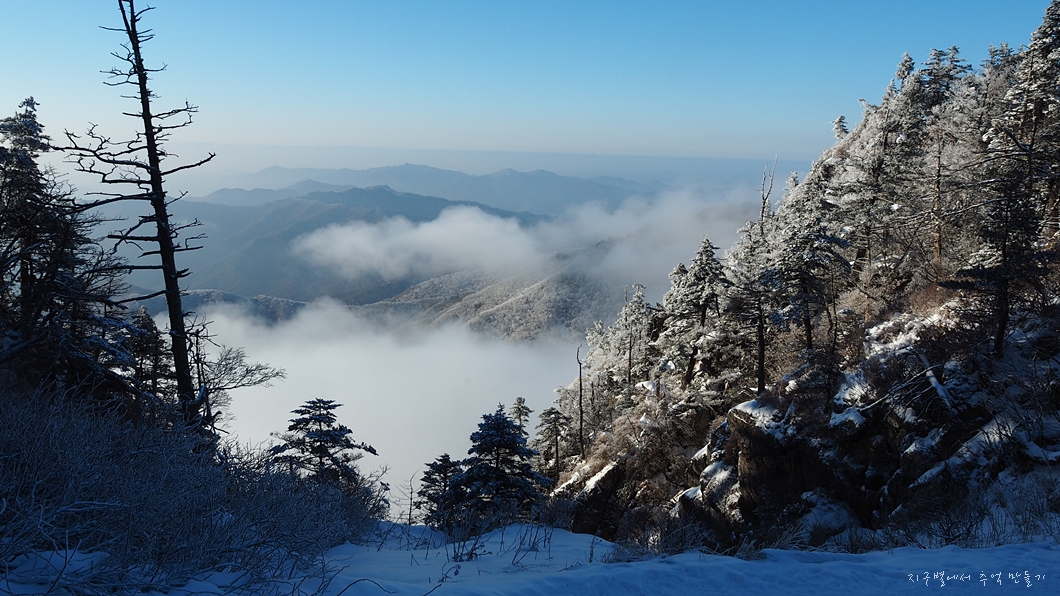 마침 그믐날 내린 눈이 지리산을 설경 천국으로 만들어 정말 기가막힌 눈꽃 구경을 하였구요.