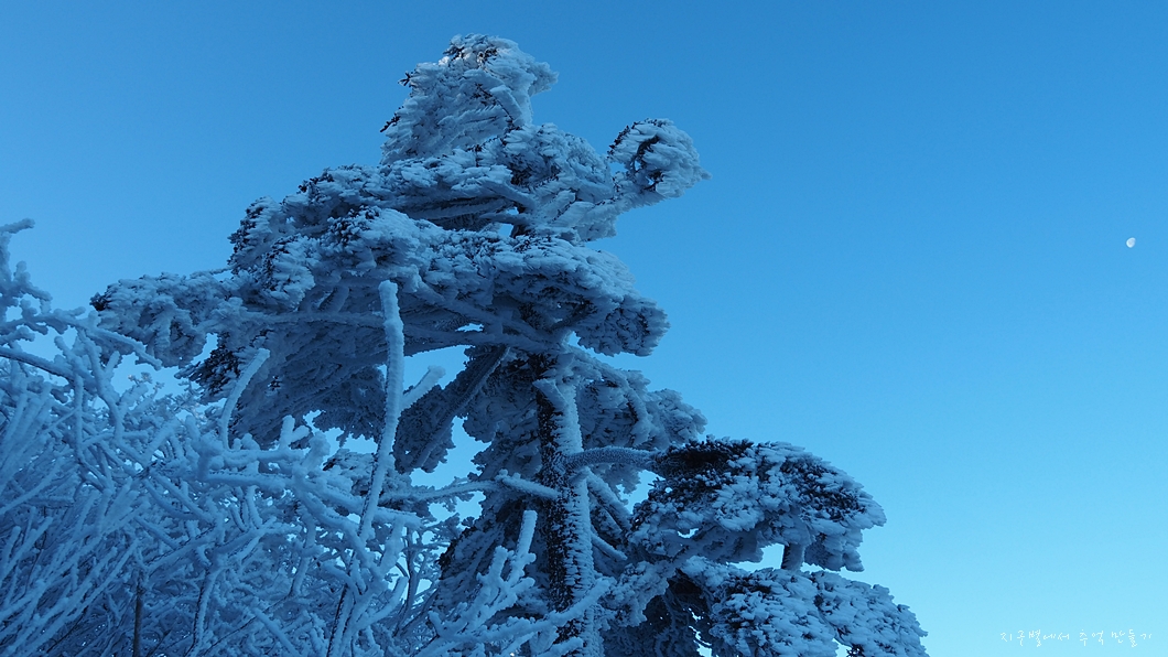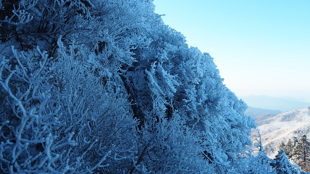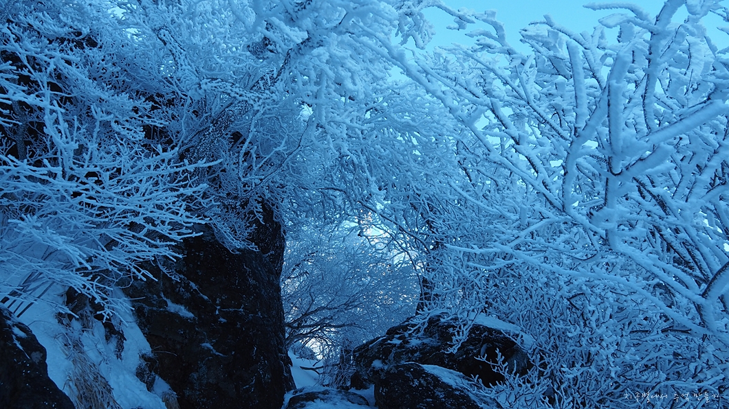 차가운 날씨와 함께 보는 아침 눈꽃의 느낌이 아주 멋지게 와닿습니다.
