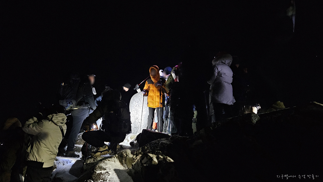 정상에는 캄캄한 새벽인데도 인증줄이 길게 이어져 있구요.