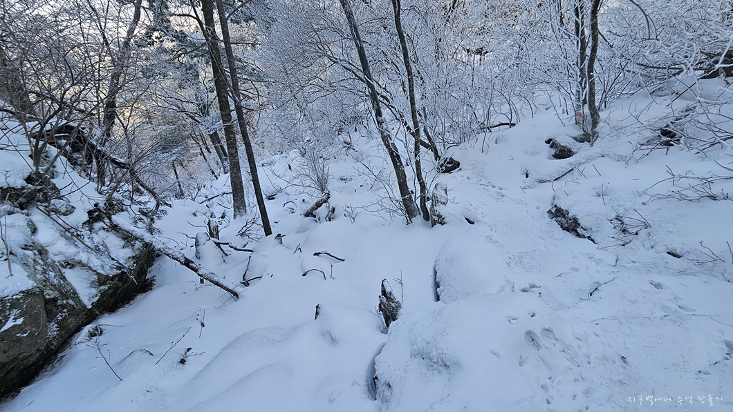 겨울 산행에서 추위라는 건 기온은 많이 떨어져도 괜찮은데 바람이 불면 엄청 춥게 느껴진답니다.