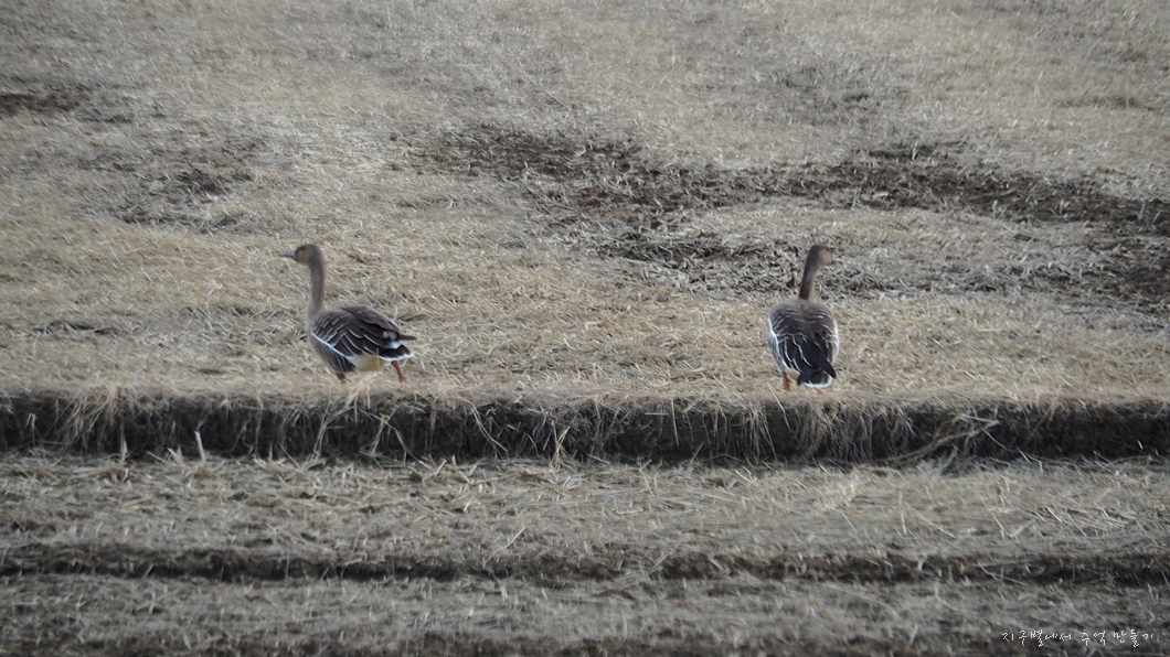 반대편 논에는 일부러 먹이를 뿌려 놓은 듯 물 좋아하지 않는 철새들이 엄청나게 많네요,