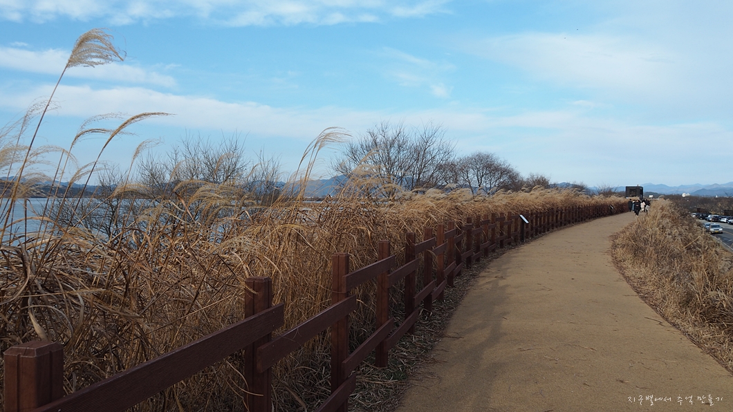 마른 억새와 함께 바쁜 것 없이 천천히 걷는 둑길이 참 운치가 있었습니다.